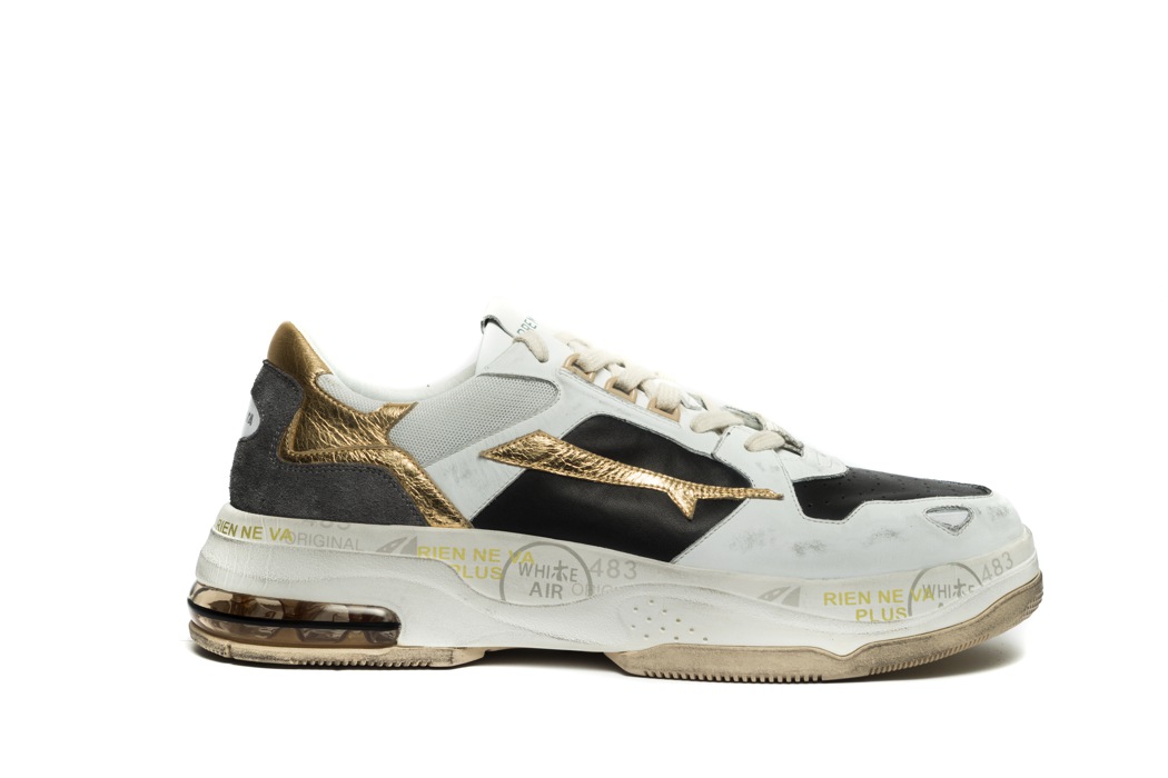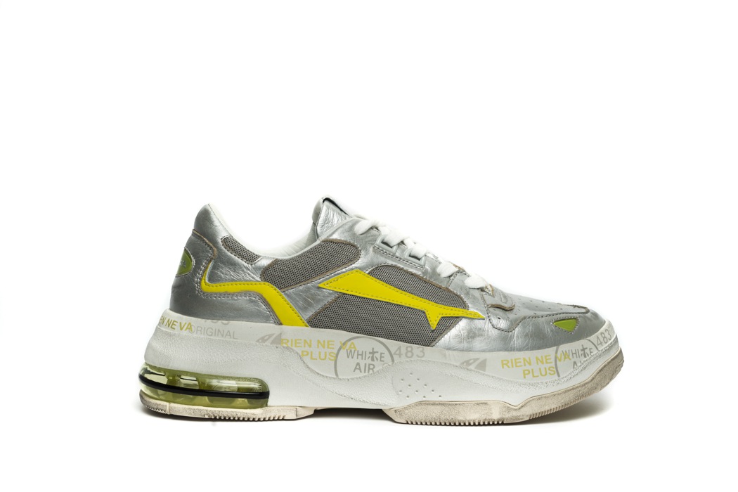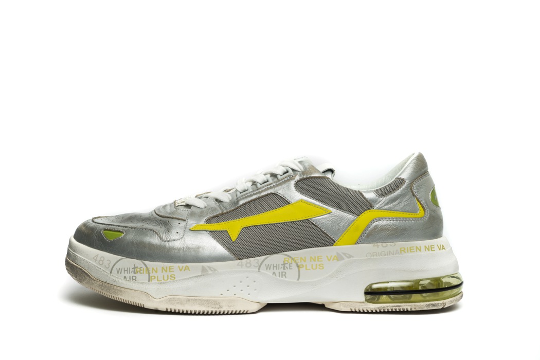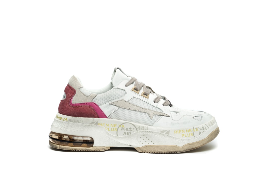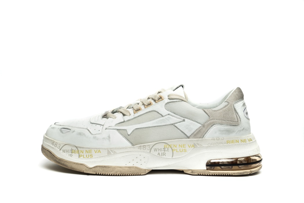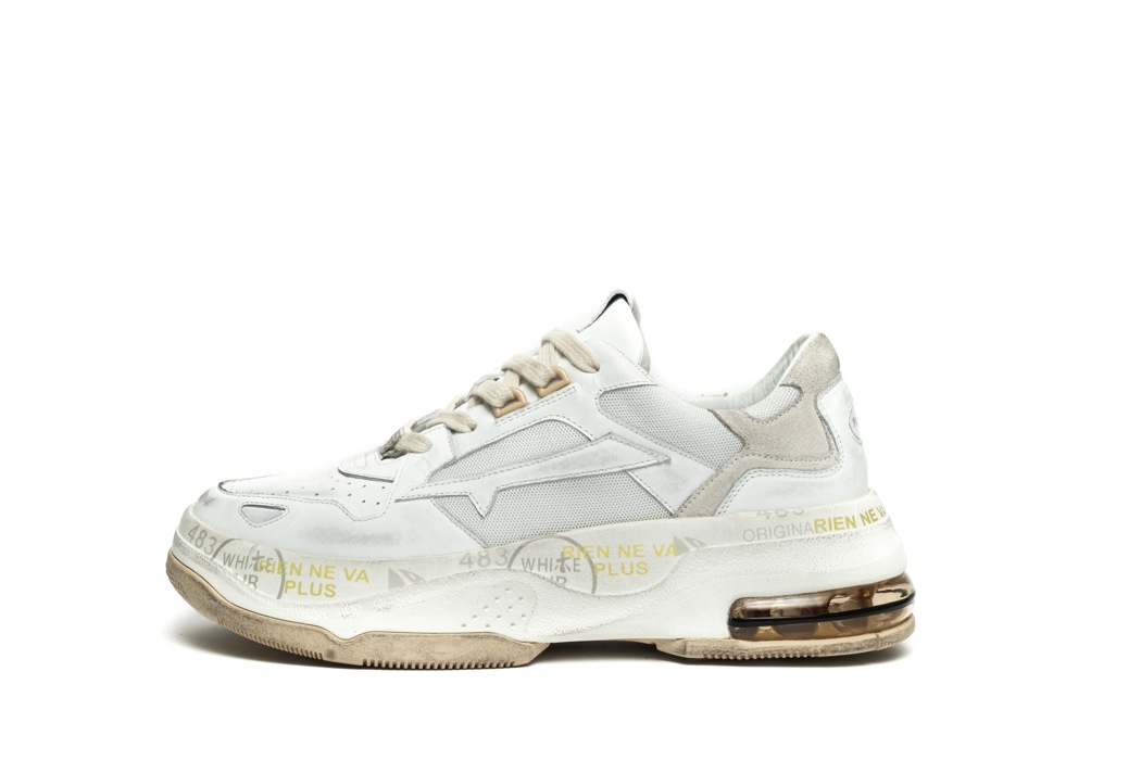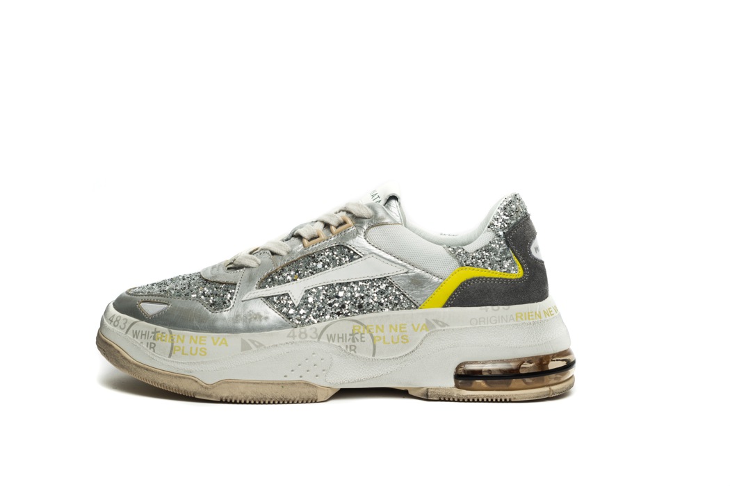 Thanks to the high-quality production, a sophisticated and extremely light sneaker is showcased in four styles per model in eight different color combinations, from total white to glitter and laminated. Available in the Premiata stores, on premiata.it and in the most prestigious fashionable sneakers retailers.