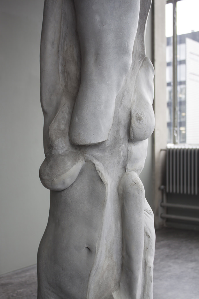 “I’m standing straight with my arms stretched upwards, supporting the concrete ceiling. This column carries my burden of expectations being a woman in the western society. Be beautiful. Be thin, but not too thin. Be successful and driven, but caring. Be strong, but feminine. By maintaining these expectations for as long as I have known, I started to feel that I am turning into a structural material. I am supporting this stereotype. I am becoming concrete myself.
