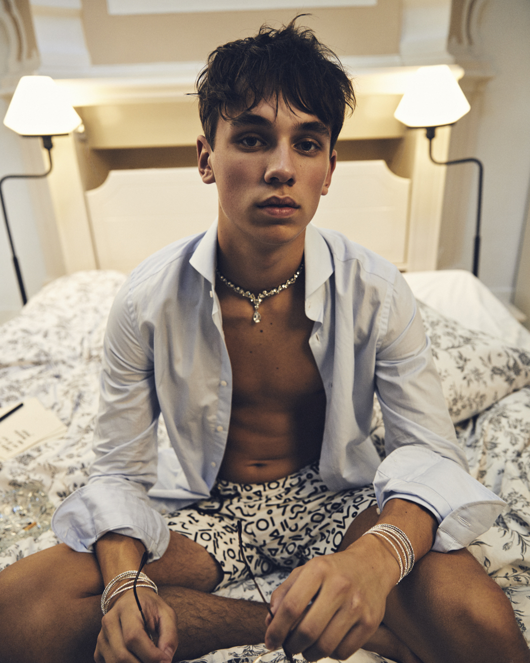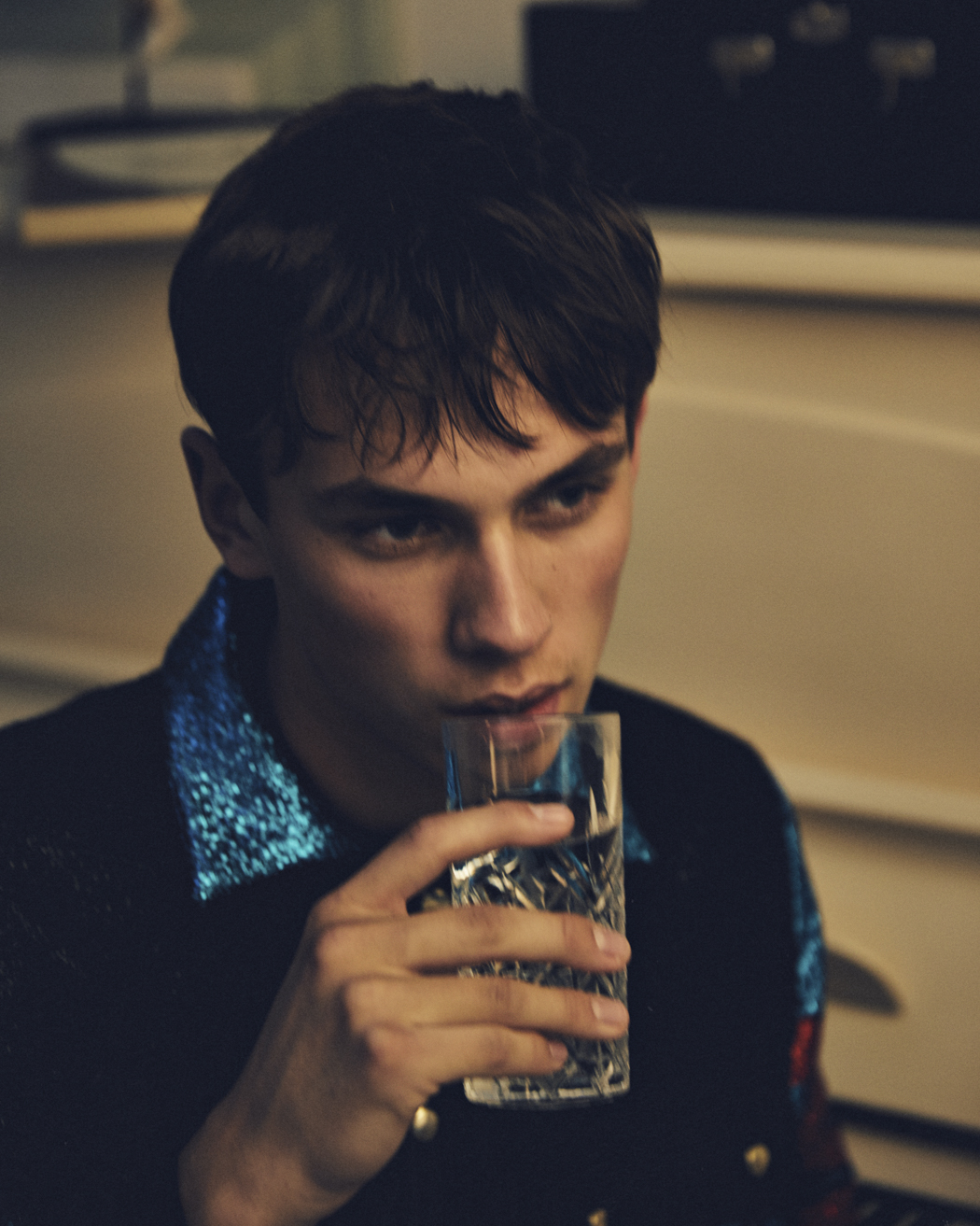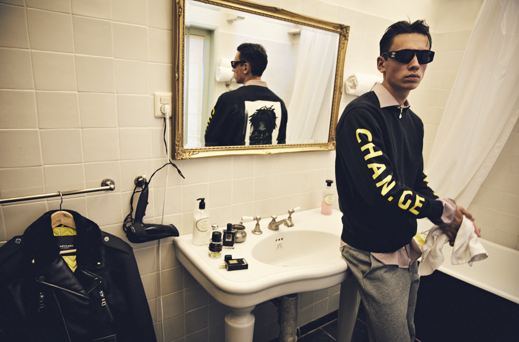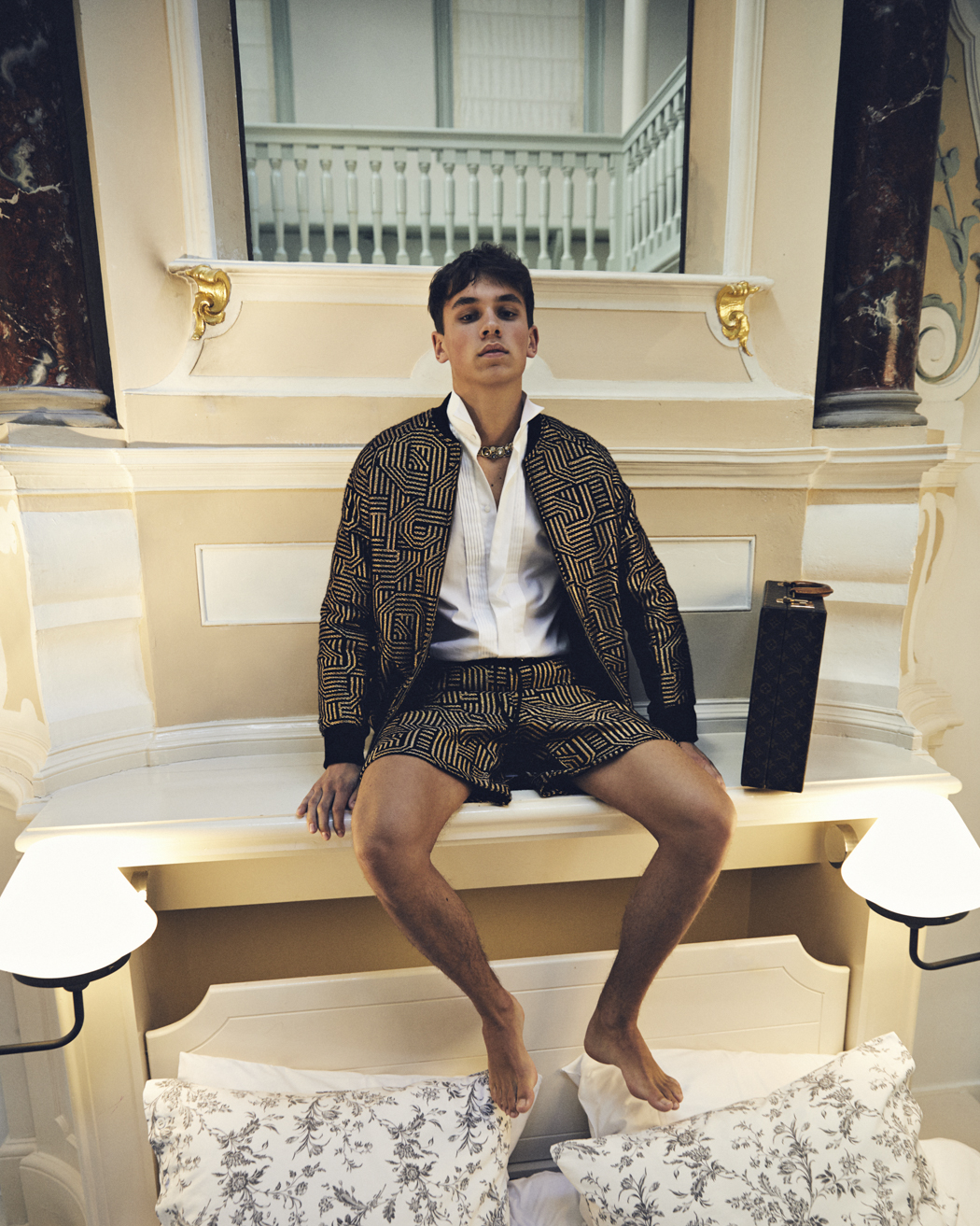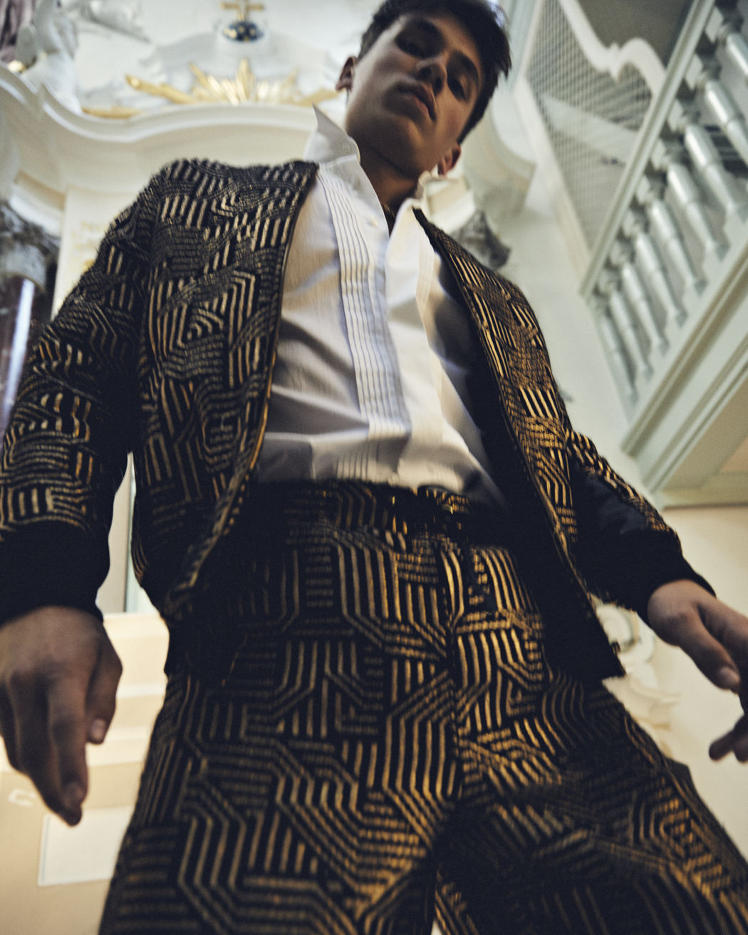 A KALTBLUT exclusive menswear editorial by Konrad Sachadel and Kenny Vogelaar . Styling by Kenny Vogelaar. Model is Jonas G @Brooks Modeling Agency. Fashion by Louis Vuitton, Chanel, Gianni Versace, Bijou Brigitte, Esther Haamke and others.