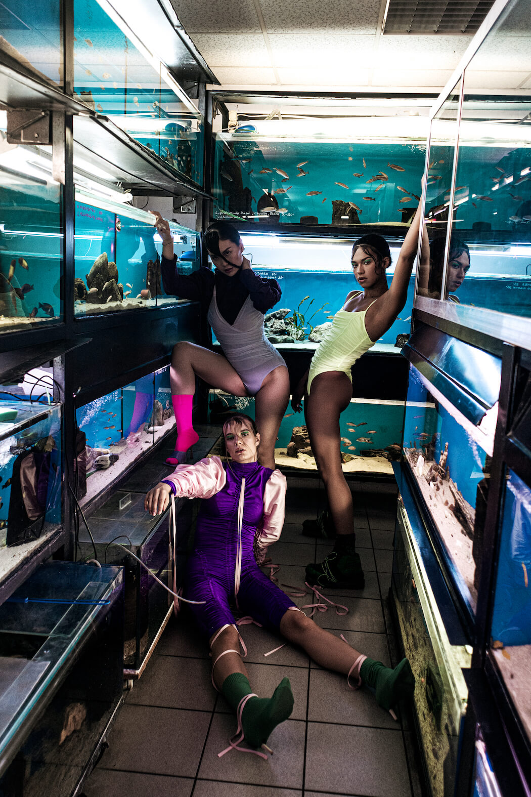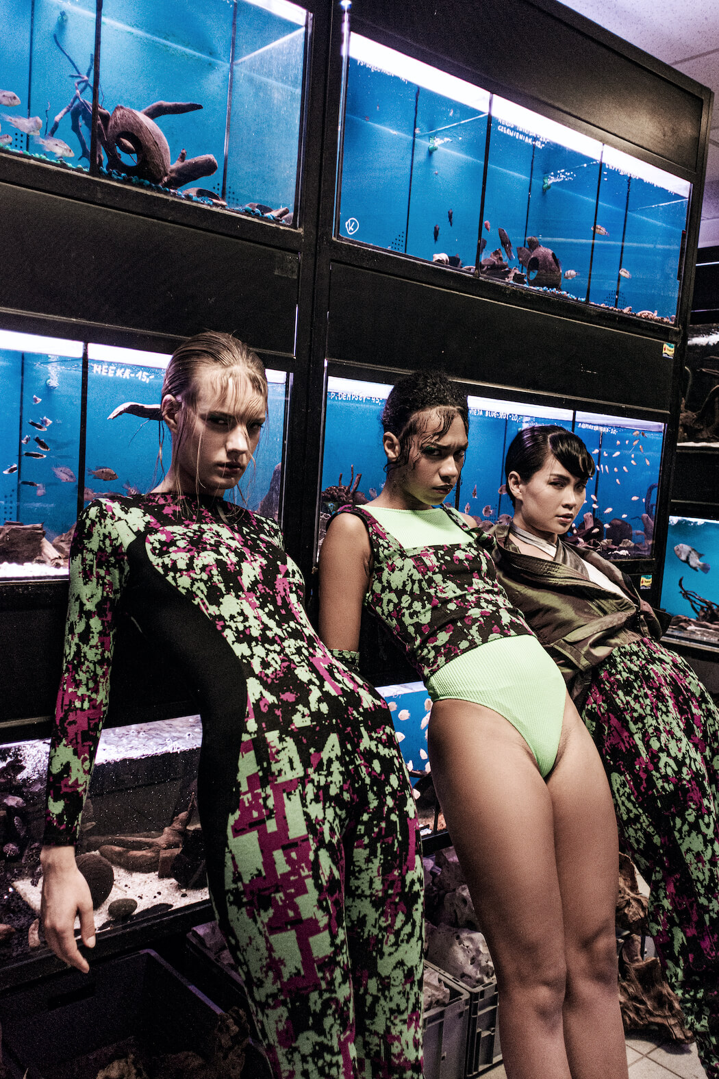 “The project had lots of adversity. I couldn’t find a photographer. All of our locations were hard to reach. Some designed projects from fashion designer arrived when we already started to shoot. But finally, we did everything that was planed about that session and created a visible vision. PRISMATIC 2.0, is a project inspired by triangle transparent optical element, with selected colour palette, which refers to the underwater colours. Due to the increasingly widespread topic of water and coral reef protection, we wanted to show the variety of colour and ethnic possibilities (a reference to species). 2.0 is about searching for new versions of already known content, forms and canons.”