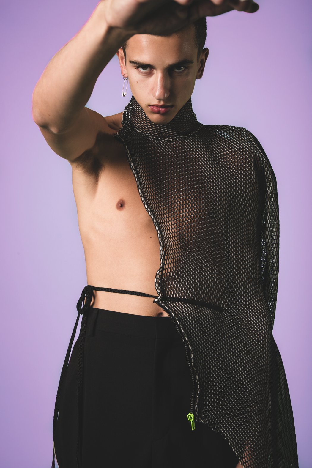 A KALTBLUT exclusive menswear editorial. Photography by Kelly Nyland. Model is Dyllon at Photogenics. Styling by Levi Sawyer. Fashion by Prada, Givenchy, Kenzo, Puma, Camper, Junya Watanabe x Comme Des Garcons and others.