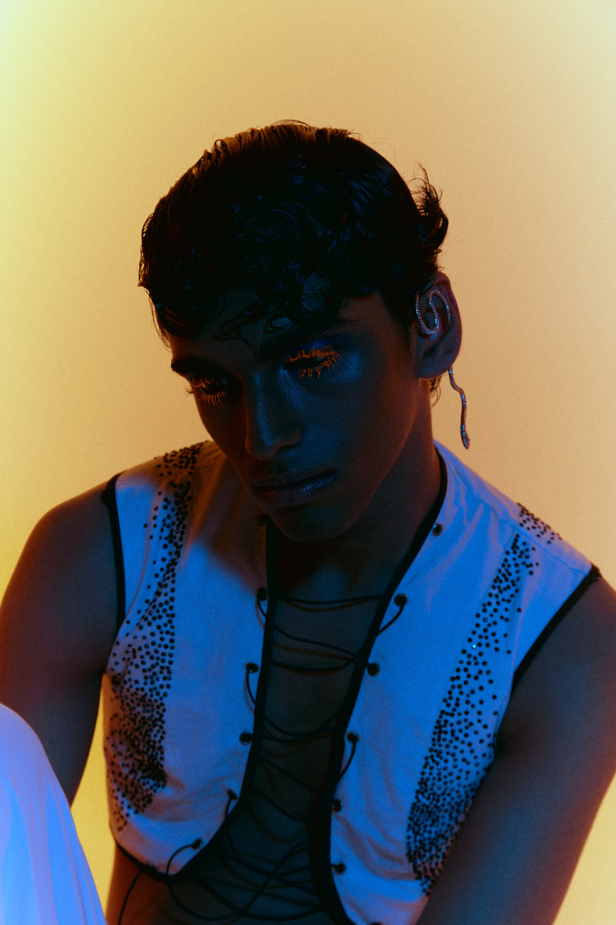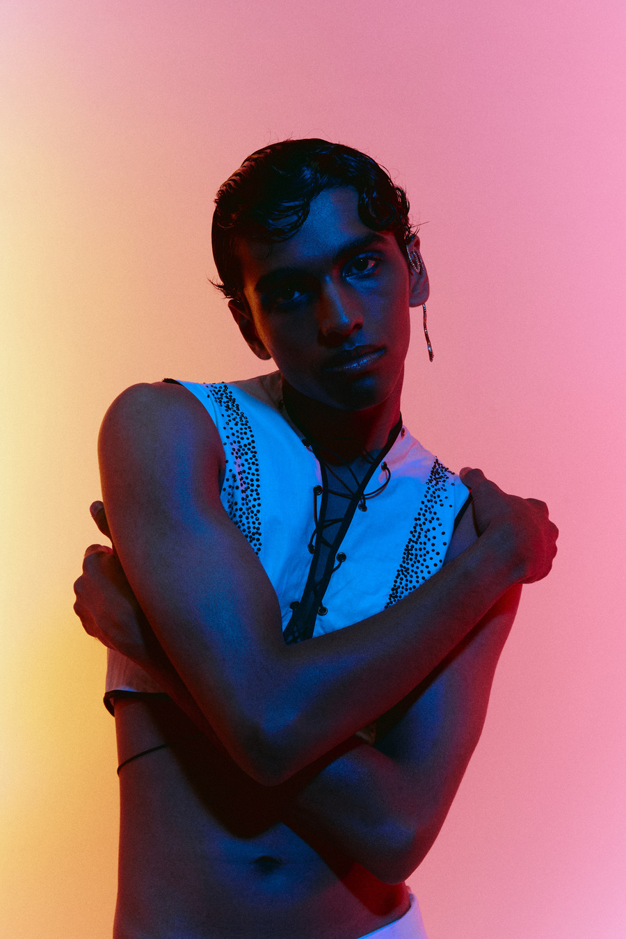 A KALTBLUT exclusive editorial curated by Aditi Bhosle, Mrinmai Parab and Shraddha Shetty. The models are Vedant Rao and Pratham Suvarna. The shoot has successfully captured a visual journey through the vibrant and mind-bending world of psychedelia, interpreted through a contemporary fashion lens. “Psychedelic Odyssey” showcases a fusion of temperamental postures, bold colours, and unconventional silhouettes, drawing inspiration from the psychological perspective associated with psychedelics with a modern twist. Each carefully curated look encapsulates the spirit of the mind’s journey, experimentation, and self-expression, inviting viewers to interpret each stage independently.