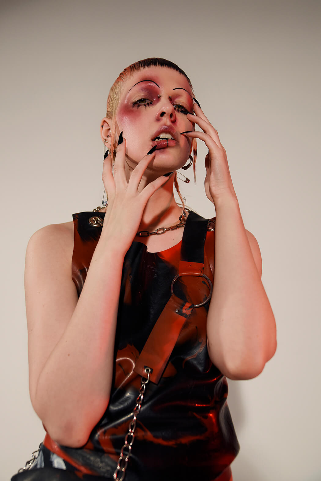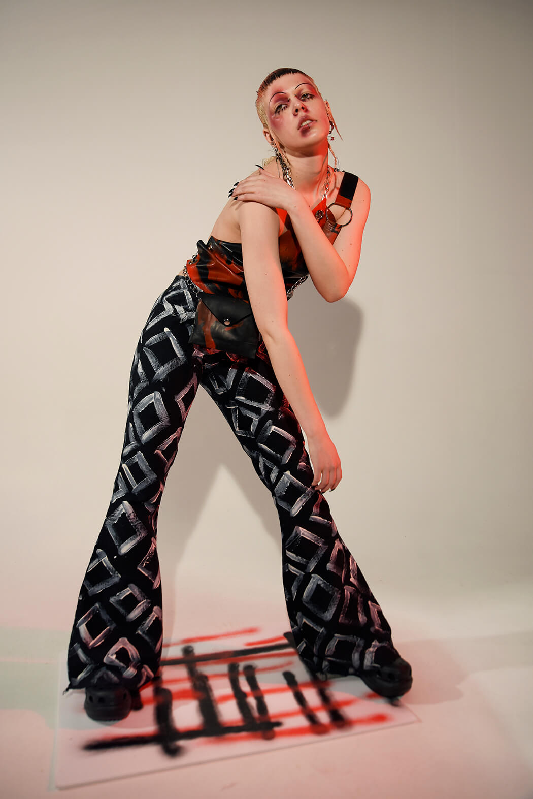 “I am an Irish creative. In Ireland, the Punk scene was incredibly prevalent during the time of the troubles as a non-sectarian common ground for young people rejecting the permeation of violence in the country. This concept draws on references from the original punk culture but also dystopian worlds such as Tim Burton’s work, the anime sphere and my own style of DIY artwork” *Roisin O