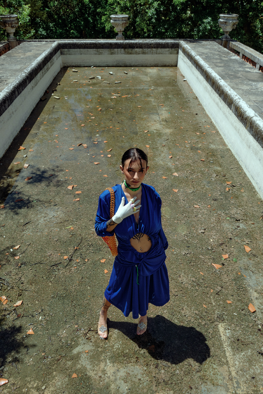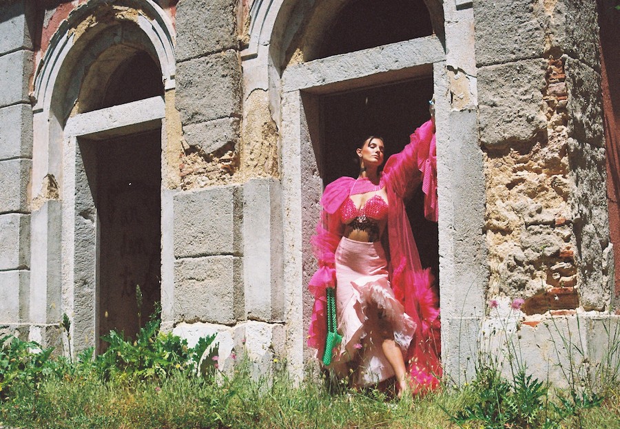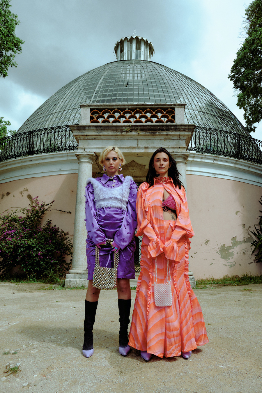 A KALTBLUT exclusive editorial and film. Photography and Art Direction by Julia Dimitrova. Models are Isabella Corái and Luna Stothe. Styling by Naira de Almeida. Makeup by Carlota Faleiro. Our surroundings are often what unlocks the inspiration within. Ruins from centuries ago, lost and forgotten gardens, golden stories hidden in the alleys, faded pages and dancing queens. Capturing a present moment in the past and a blooming flower into dusty grounds.