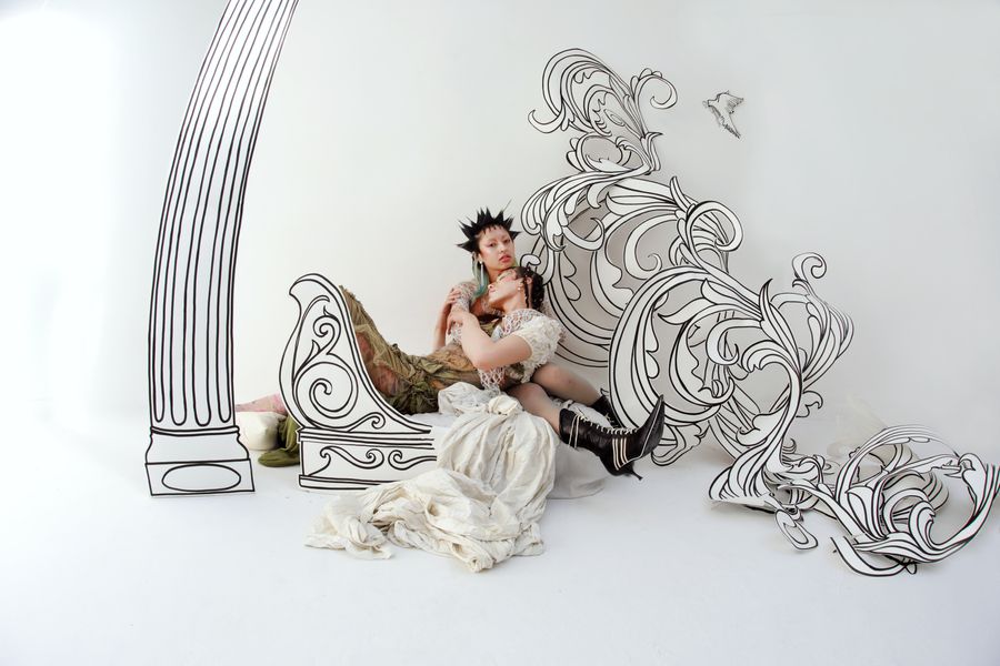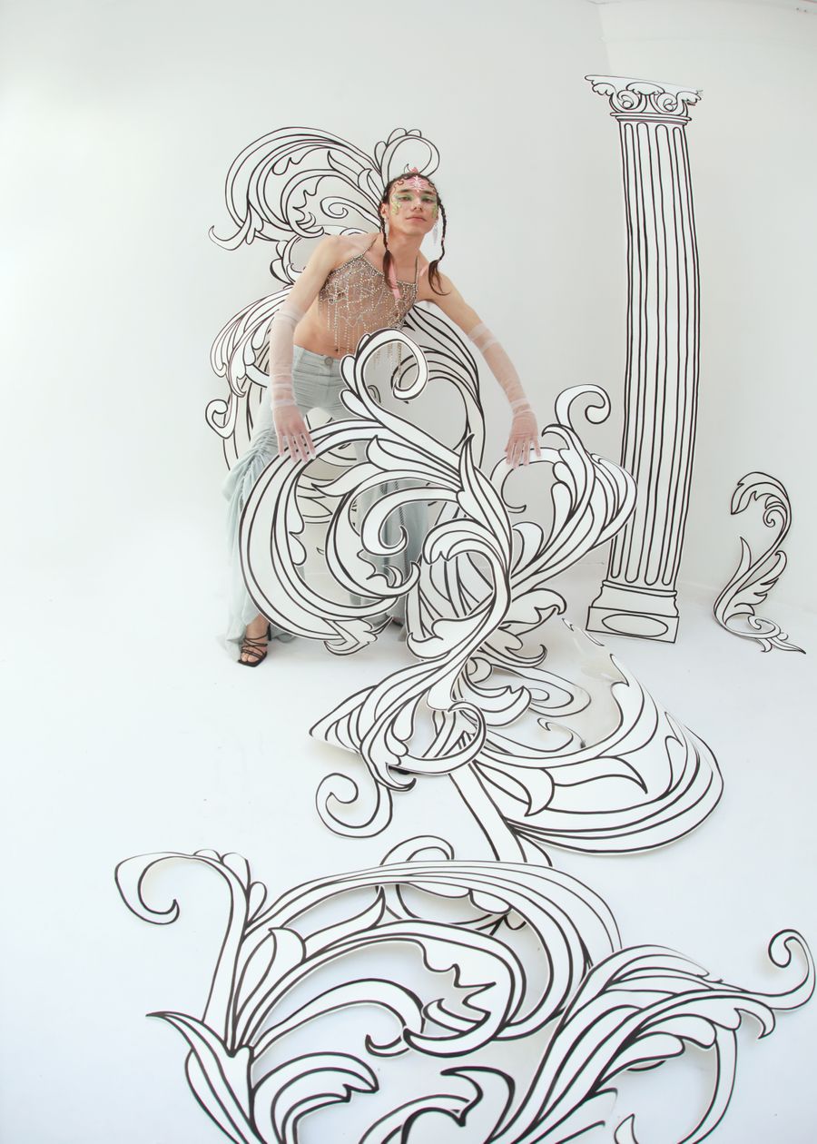 Clothing by; Dawn J Kelso @dawnjkelso, Millie Welch @mi1lli, Alvaro Mars @alvaromarsinfo, Charlie McCosker @charliemccosker Clio Peppiat @cliopeppiatt, 150 MG @150mg_