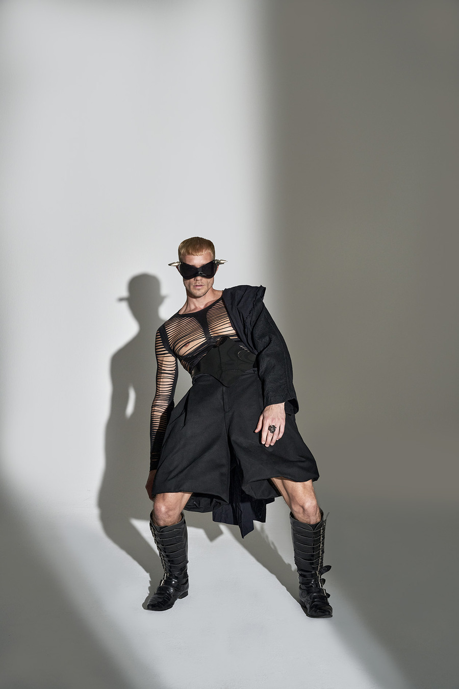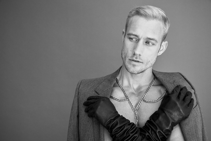 A KALTBLUT exclusive. Photography by Alexander Courtman. The model is Kevin Pabel signed with Louisa Models. Creative Direction by Dirk Meycke. Grooming by Sabrina Reuschl. Styling by Lorand Lajos using Bottega Veneta, Rick Owens, Atelier Lorand Lajos, Kenzo, Burberry, Damir Doma, Dior, Mugler, Tom Ford, Alexander McQueen, Thor, Valentino, Wegener, Givenchy, Brioni, Jean Paul Gaultier, Roeckl, Gucci, Calvin Klein, Alpine Stars, Chanel.