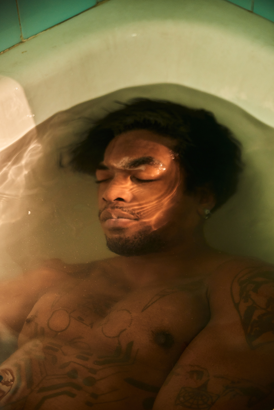 GUARDIAN ANGELS, the inaugural piece of RAID, introduces us instantly to a bathroom where our protagonists, Felix (Lars Skov) and Thomas (Sunny Mike), engage in a passionate encounter while ostensibly keeping vigil over their friend, Jonzu. Their intoxicating chemistry eclipses their original mission as persistent knocks on the door fade into the background.