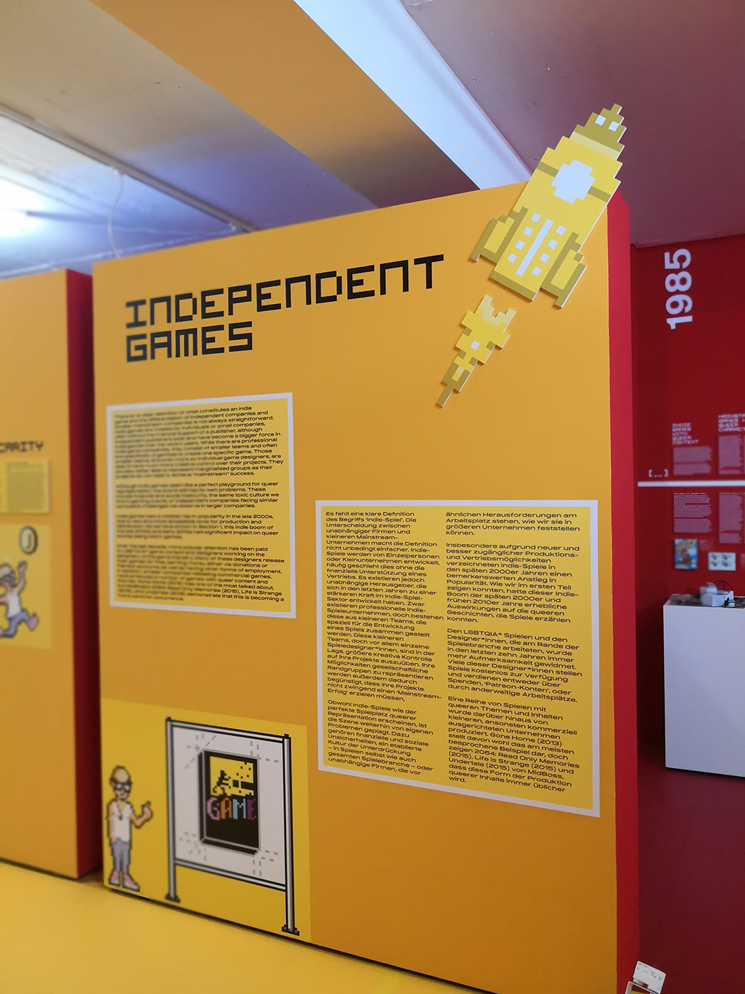 »Rainbow Arcade« asks not only how social discourses and developments have been reflected in video games and if there has been any major progress in regards of LGBTIQ* representation in entertainment media. In addition, the exhibition explores issues regarding our digital memory and the unique challenges posed by digital culture to archives and institutions and the archival absence of contemporary queer media history.