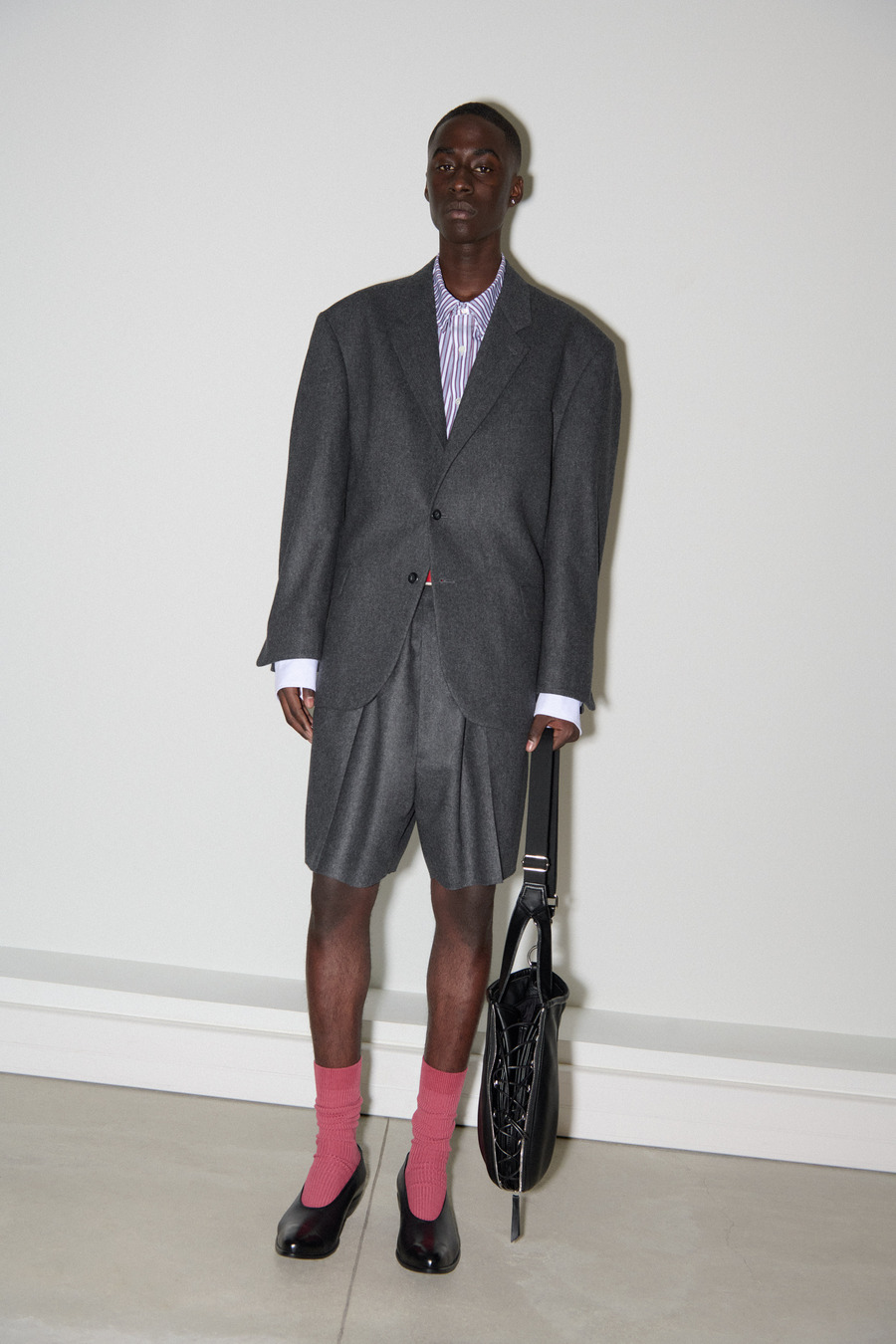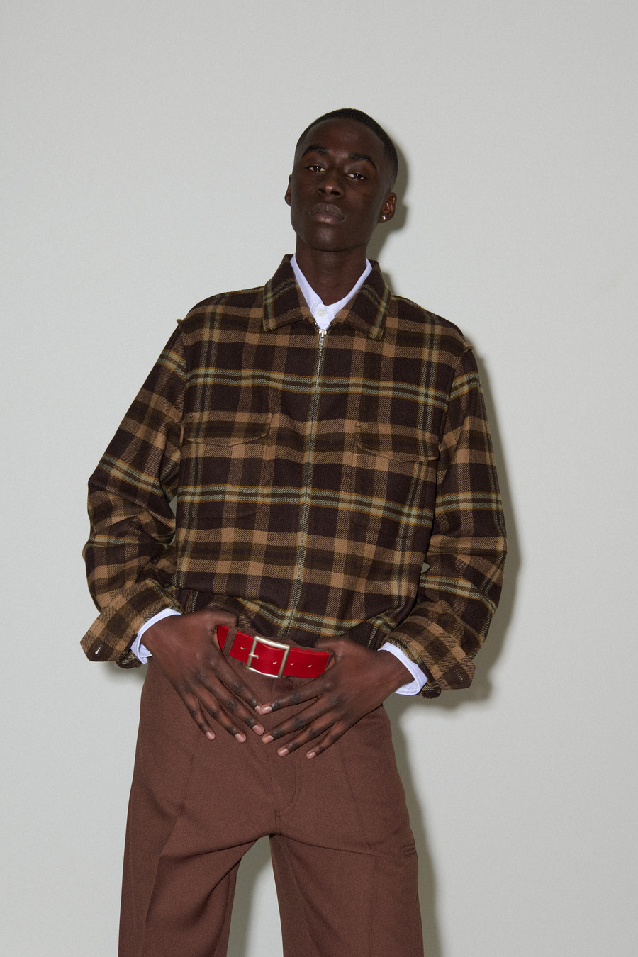 The collection unveils an exquisite array of impeccably tailored suits featuring suave one-button silhouettes, skewed Oxford shirting adorned with signature details, and timeless tartan bombers that embody the rich British style legacy. Sophisticated pied de poule overcoats further exemplify Pilati’s off-kilter design philosophy, effectively melding nostalgia with a modern twist.