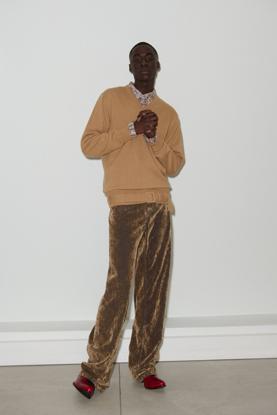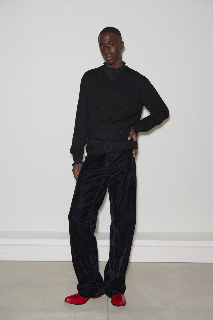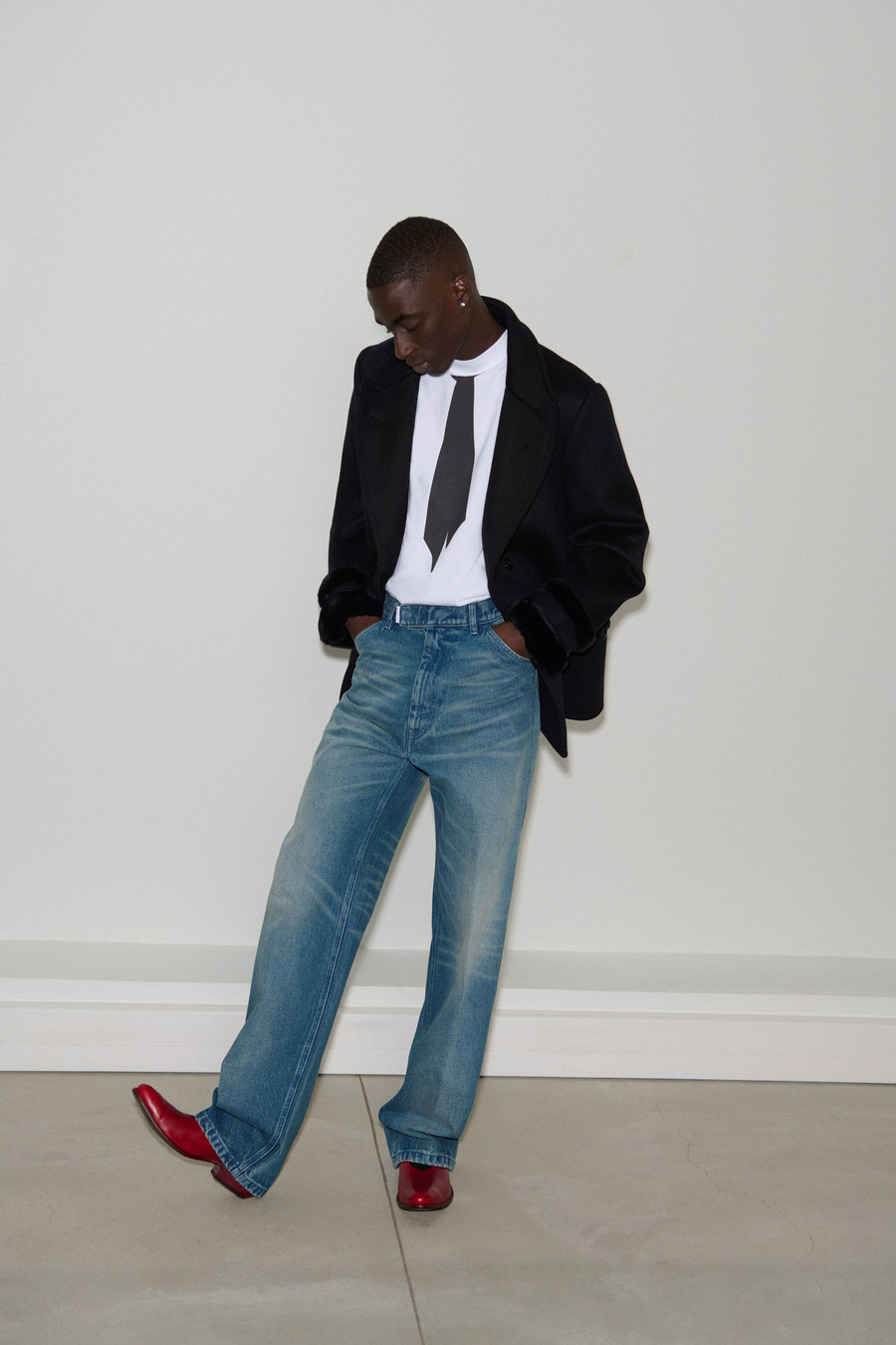 As we delve into the Fall/Winter 2024 collection, an eclectic mix of materials breathes fresh energy into outfits and accessories alike. Edgy stonewashed denim pairs beautifully with luxurious washed velvet, while striking red and black leather, elegant satin, and contemporary textures come together to redefine the modern man’s aesthetic—apt for both an elegant dinner and a lively night out.