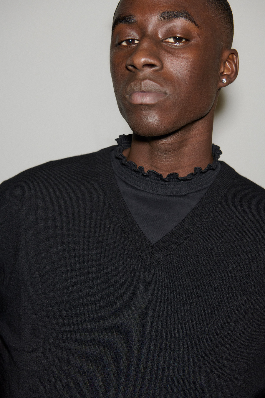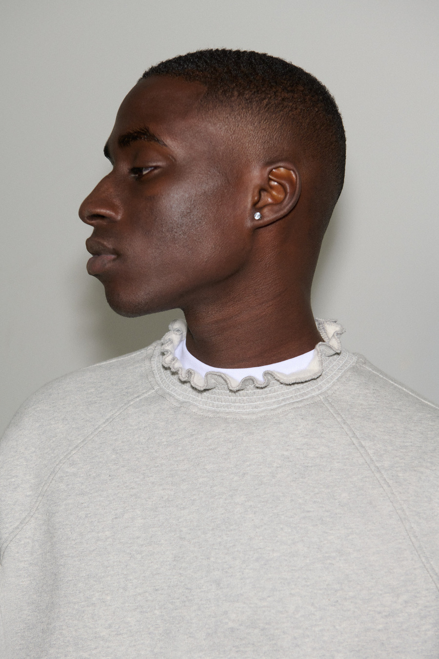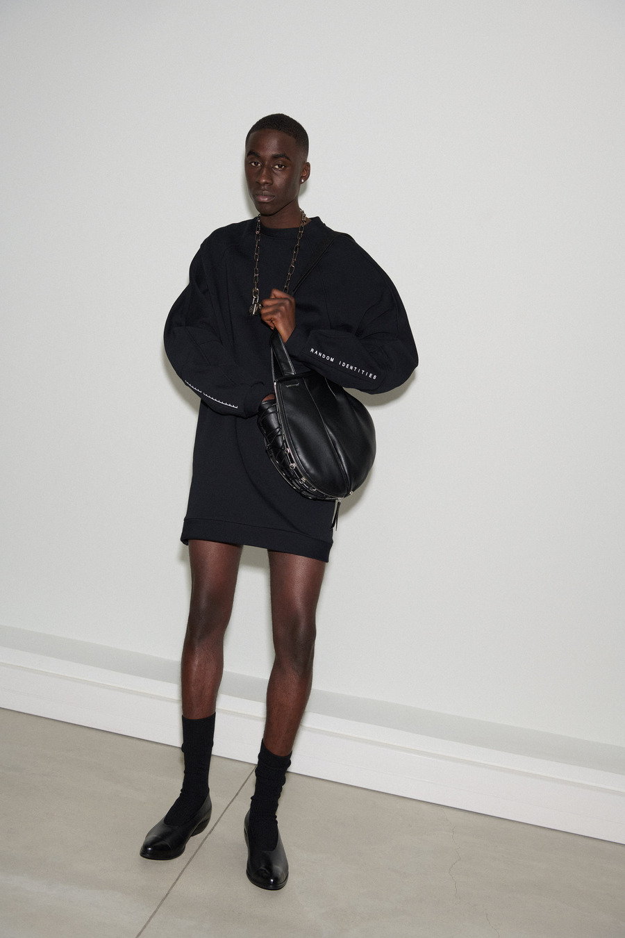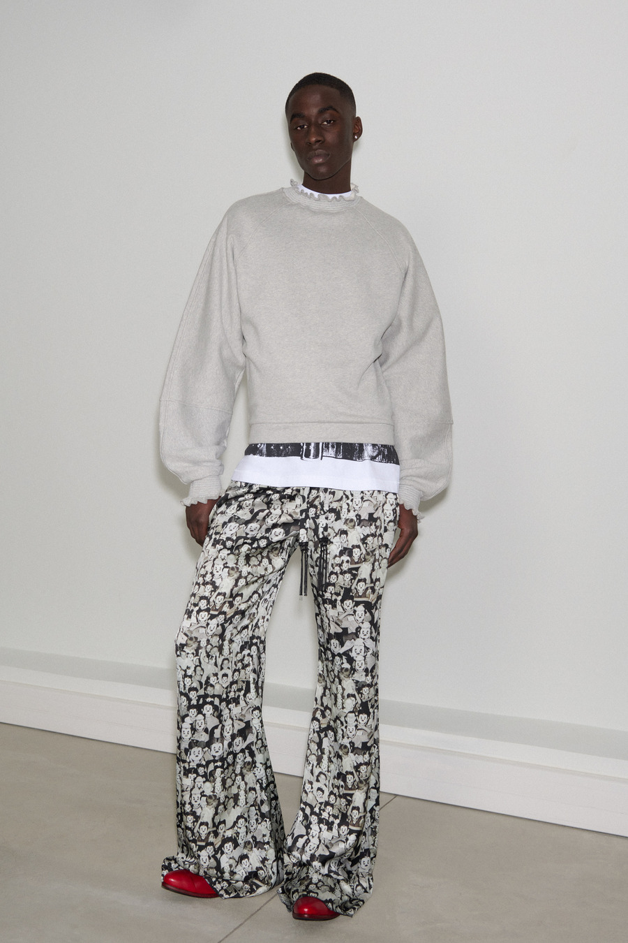 There’s an unmistakable charm to the collection’s interplay of styles, an invitation to embrace personal expression while navigating the delicate line between individuality and harmonious collective heritage. With uniquely fashioned menswear pieces like ruffle neck sweatshirts and slip-cut denim jeans, RANDOM IDENTITIES beckons fashion enthusiasts to embark on a journey of self-exploration and expression.