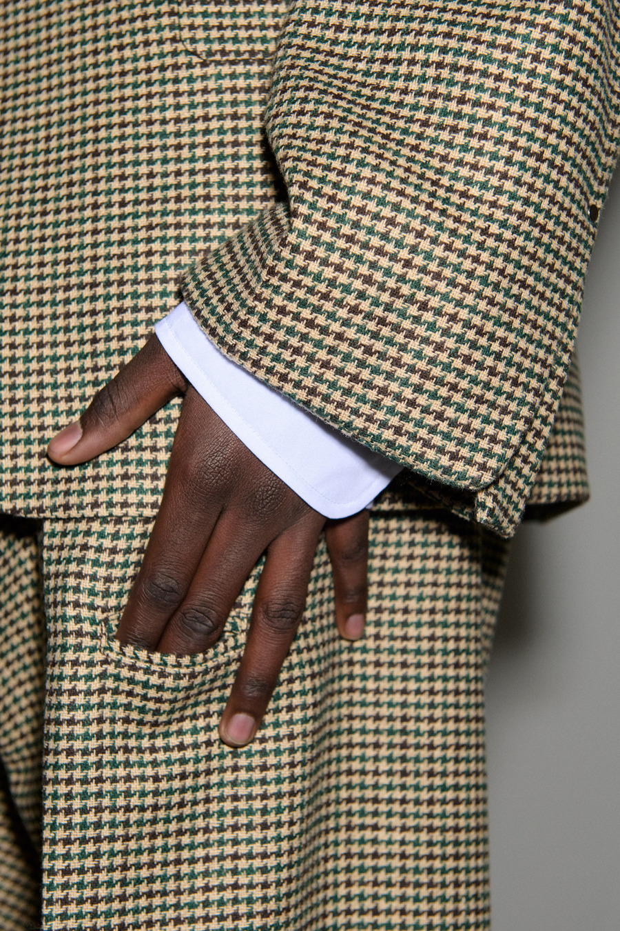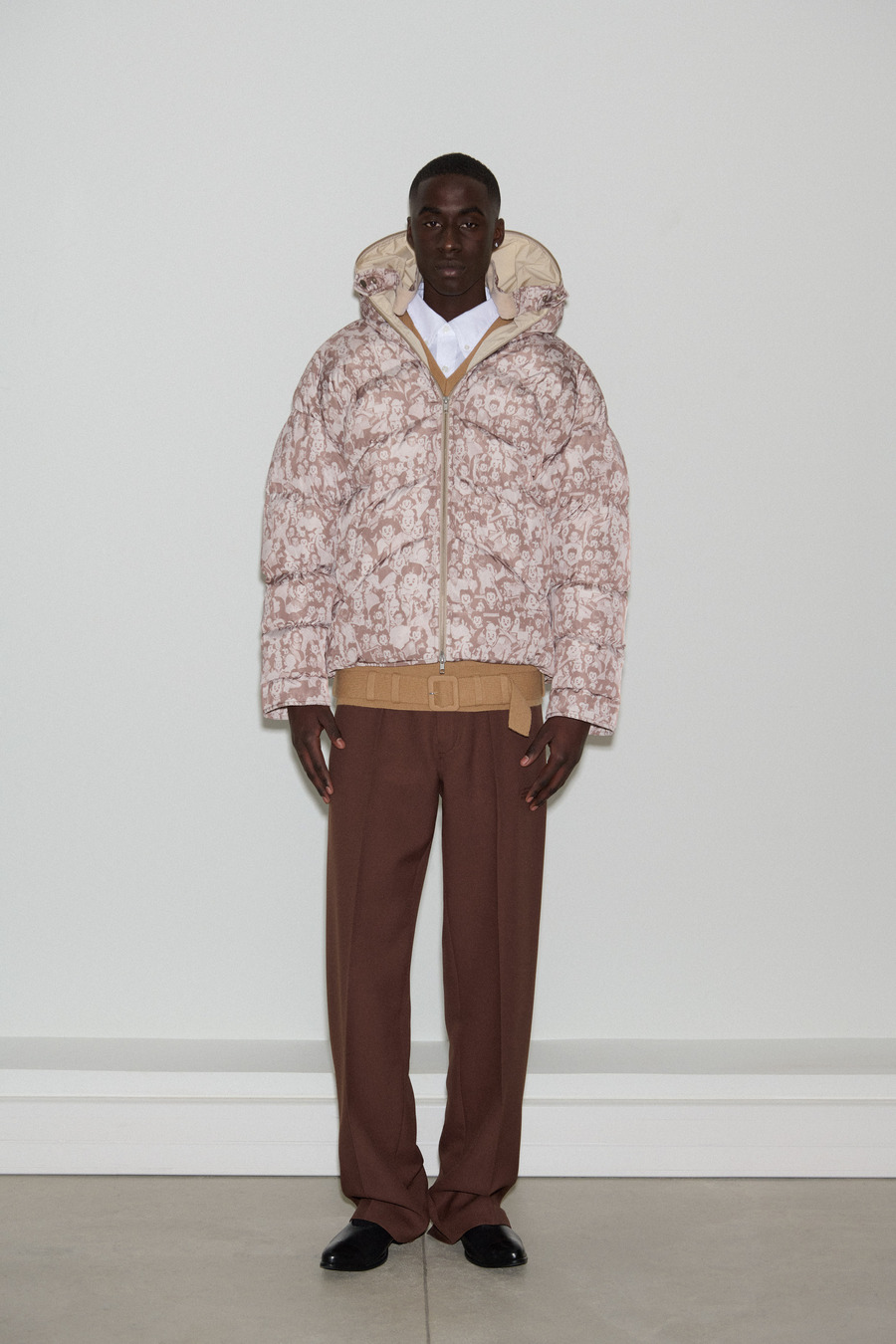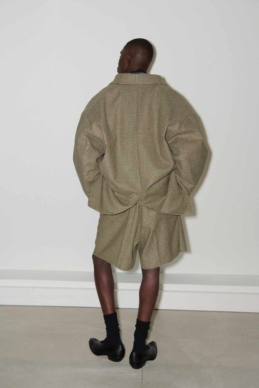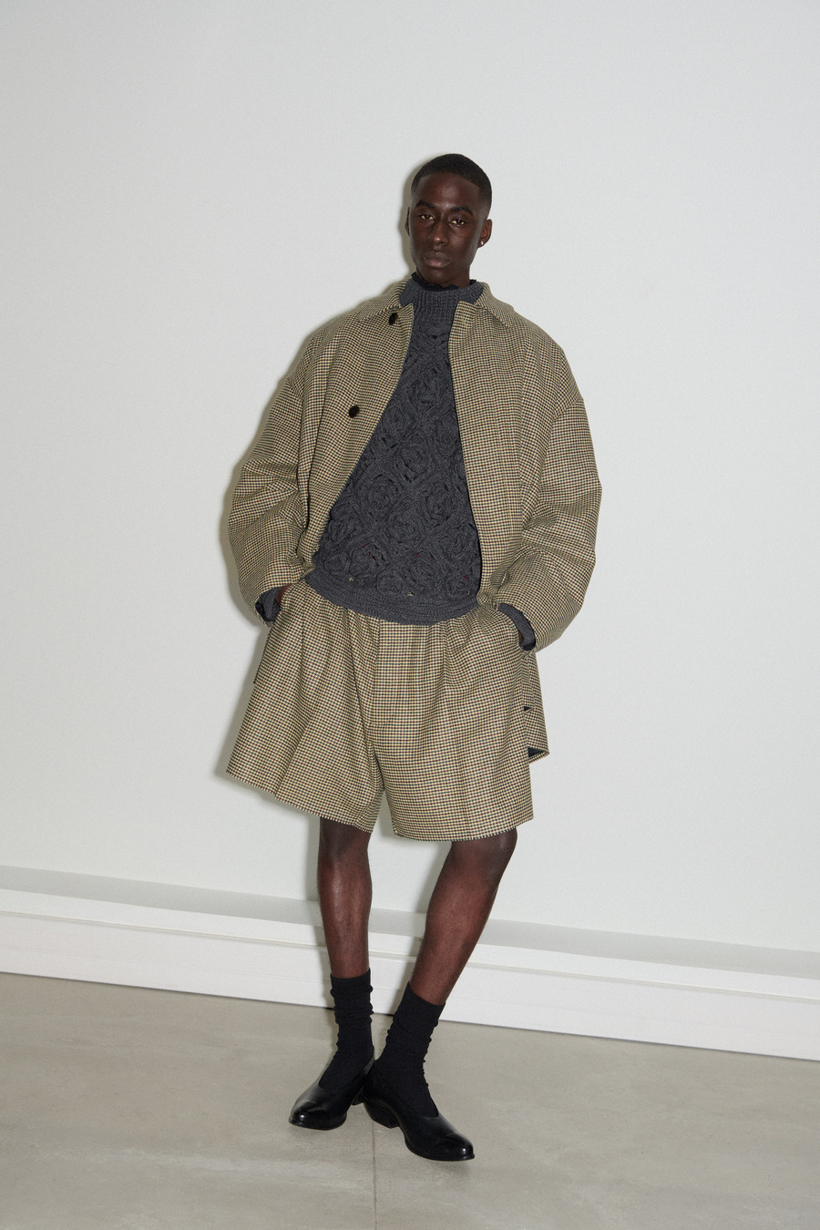 The collection unveils an exquisite array of impeccably tailored suits featuring suave one-button silhouettes, skewed Oxford shirting adorned with signature details, and timeless tartan bombers that embody the rich British style legacy. Sophisticated pied de poule overcoats further exemplify Pilati’s off-kilter design philosophy, effectively melding nostalgia with a modern twist.