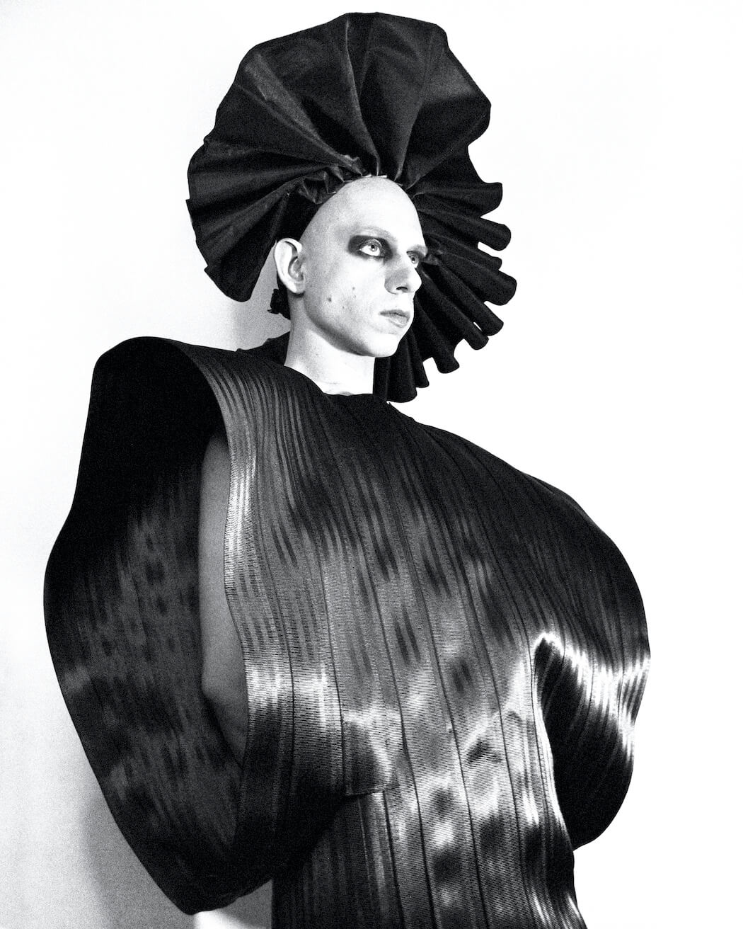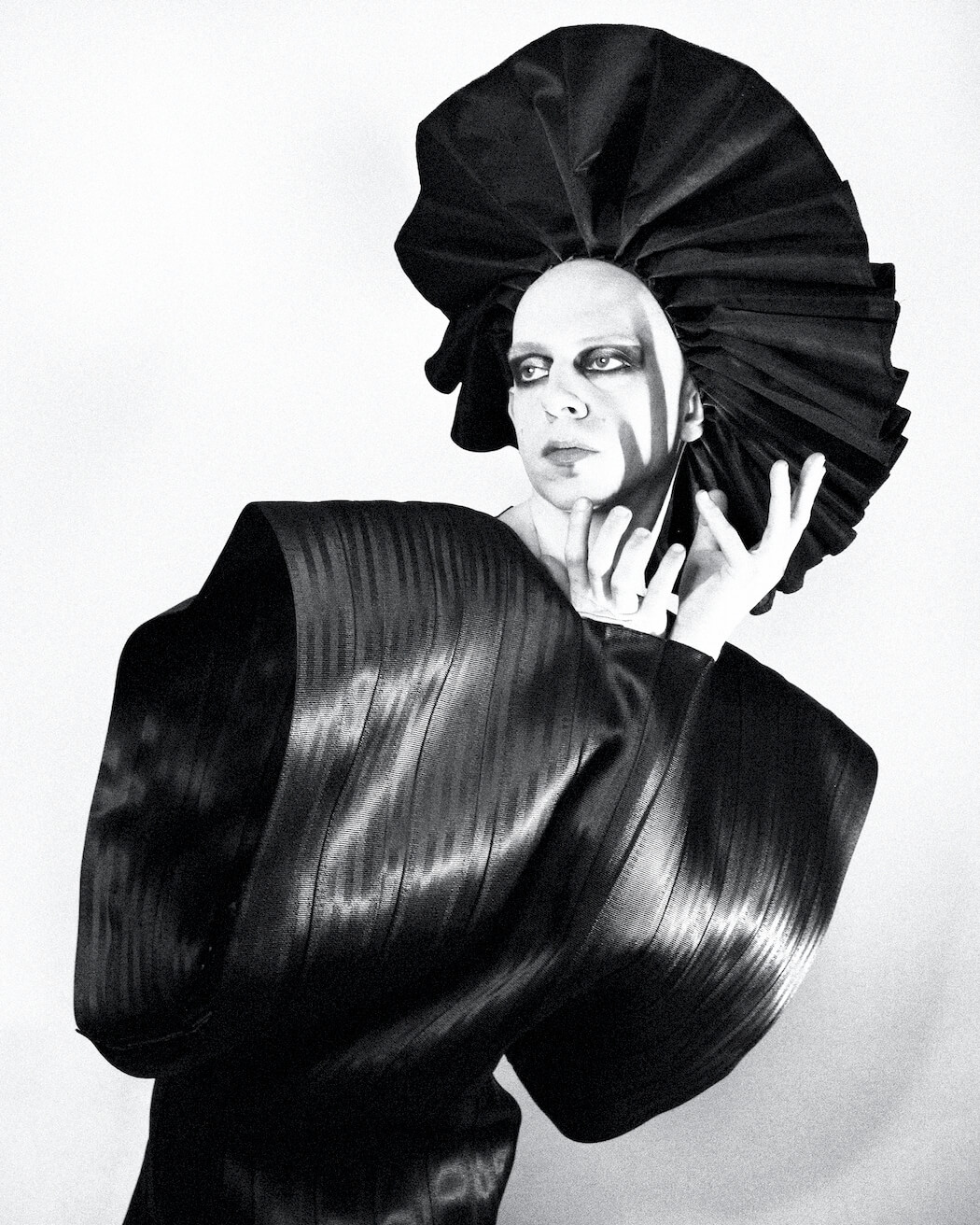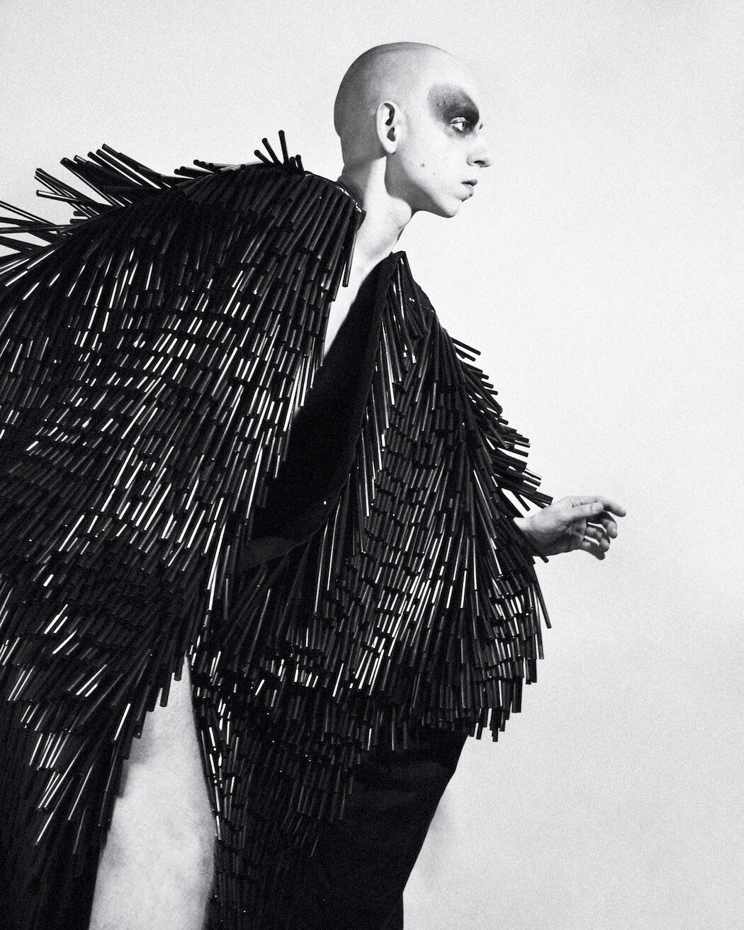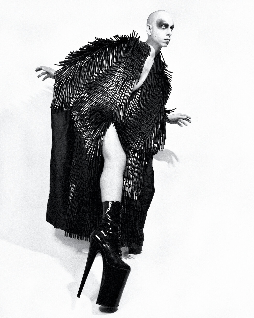 A KALTBLUT exclusive. Photographer and stylist Krystian Szymczak captured Rascal Black for us. Make-up by Robert Pyczek. All fashion and headpieces by Krystian Szymczak, sunglasses by Brylove, shoes by Pleaser Shoes.