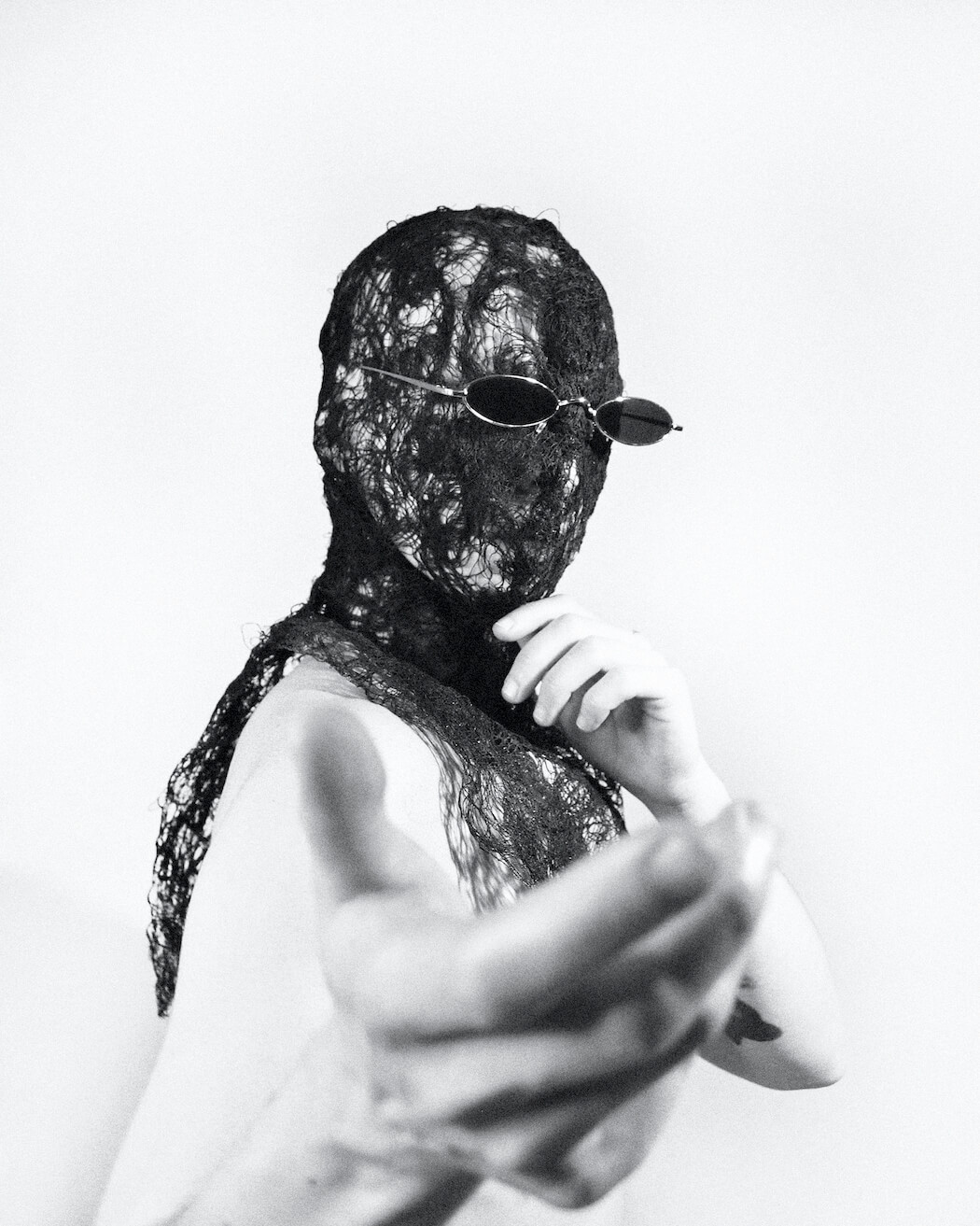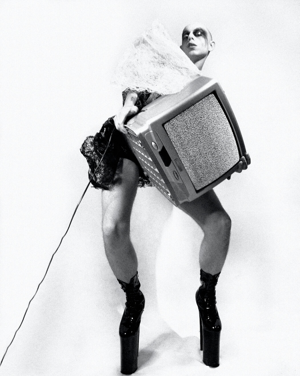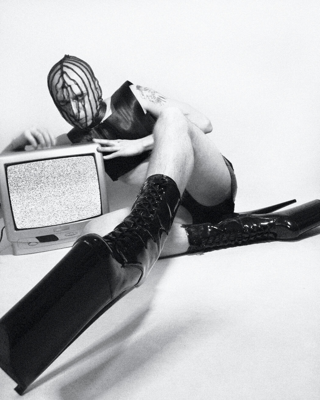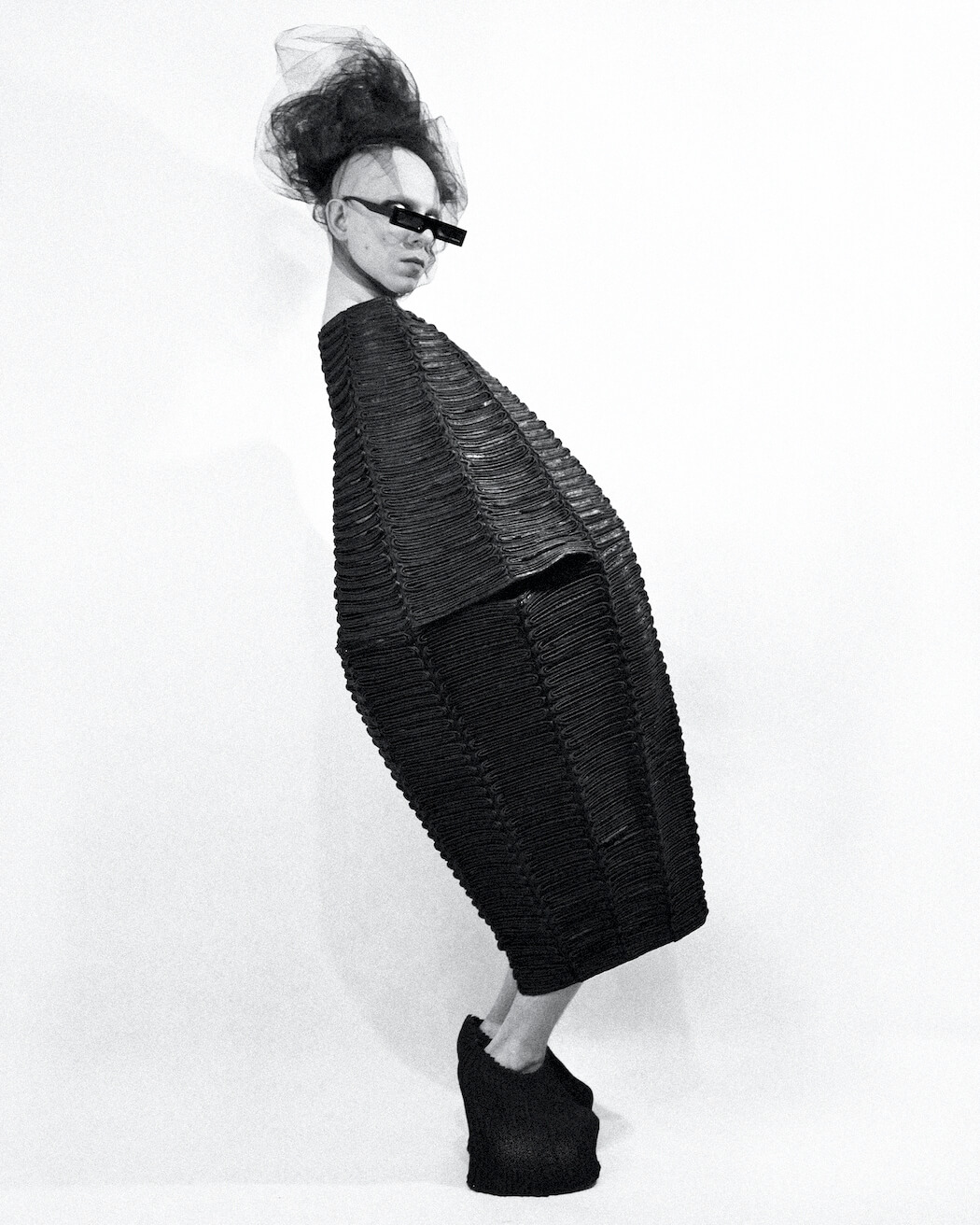 A KALTBLUT exclusive. Photographer and stylist Krystian Szymczak captured Rascal Black for us. Make-up by Robert Pyczek. All fashion and headpieces by Krystian Szymczak, sunglasses by Brylove, shoes by Pleaser Shoes.