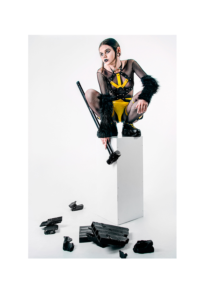 KALTBLUT presents: *Five Worlds, Five Rave Dolls* – This collection was born from the inspiration of bondage elements, and the aesthetic and culture of the club and rave scene. It pretends to go into the most curious different worlds, where the rave culture has been able to get. Five different places from rave parties that have managed to built real parallels worlds, and are represented by five Rave Dolls: Suburb Rave Doll, Zombie Rave Doll, Sea Rave Doll, Hell Rave Doll, Heaven Rave Doll. Art direction and Fashion Design: Elena García-Arquimbau. Photography by Jesus Gandolfo