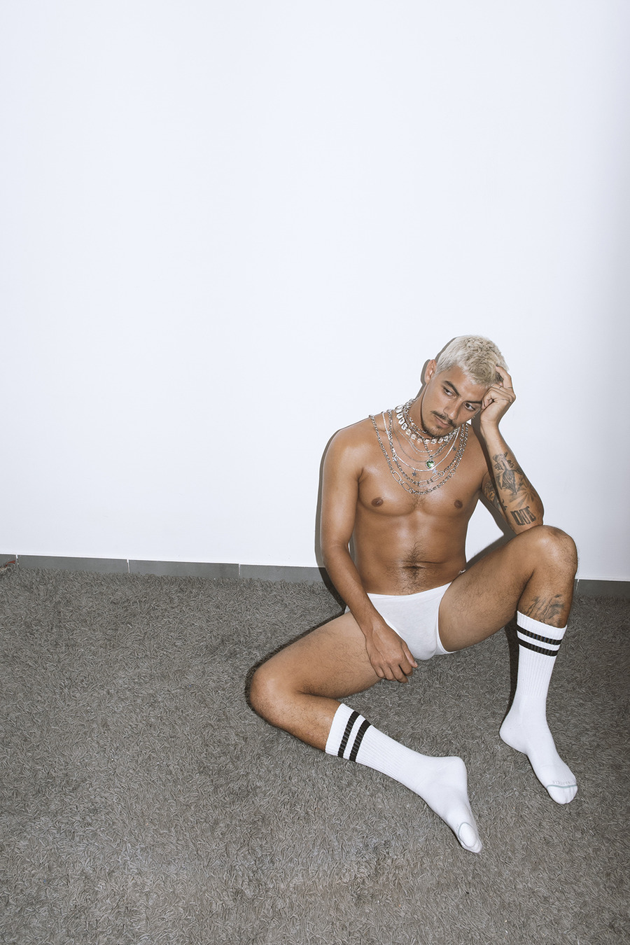 A KALTBLUT exclusive. Photography by Nimrod Peled. Model is Yoh (Yohanan) Doron. Stylist Shy Michael used fashion by SKIMS, Saint toma, Jockey, ADIDAS, American Apparel, Kornfeld, Sahar Avnet, POSTER GIRL, NAKED WOLFE, Dr Martens, Buffalo London, GLAMOROUS. Nimrod Peled is a Tel Aviv-based artist, photographer and video and fashion shows director.