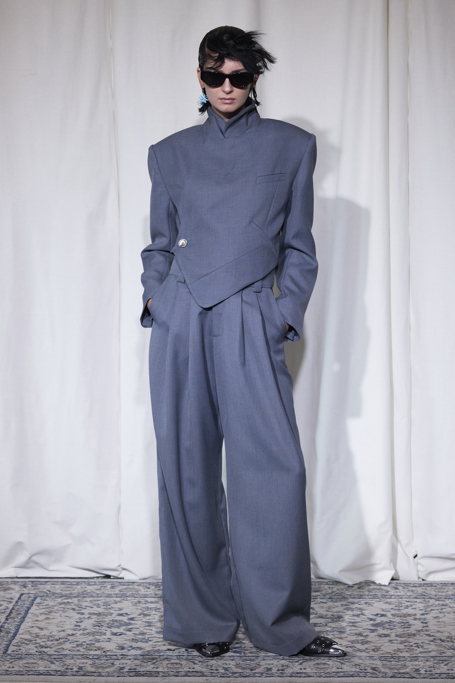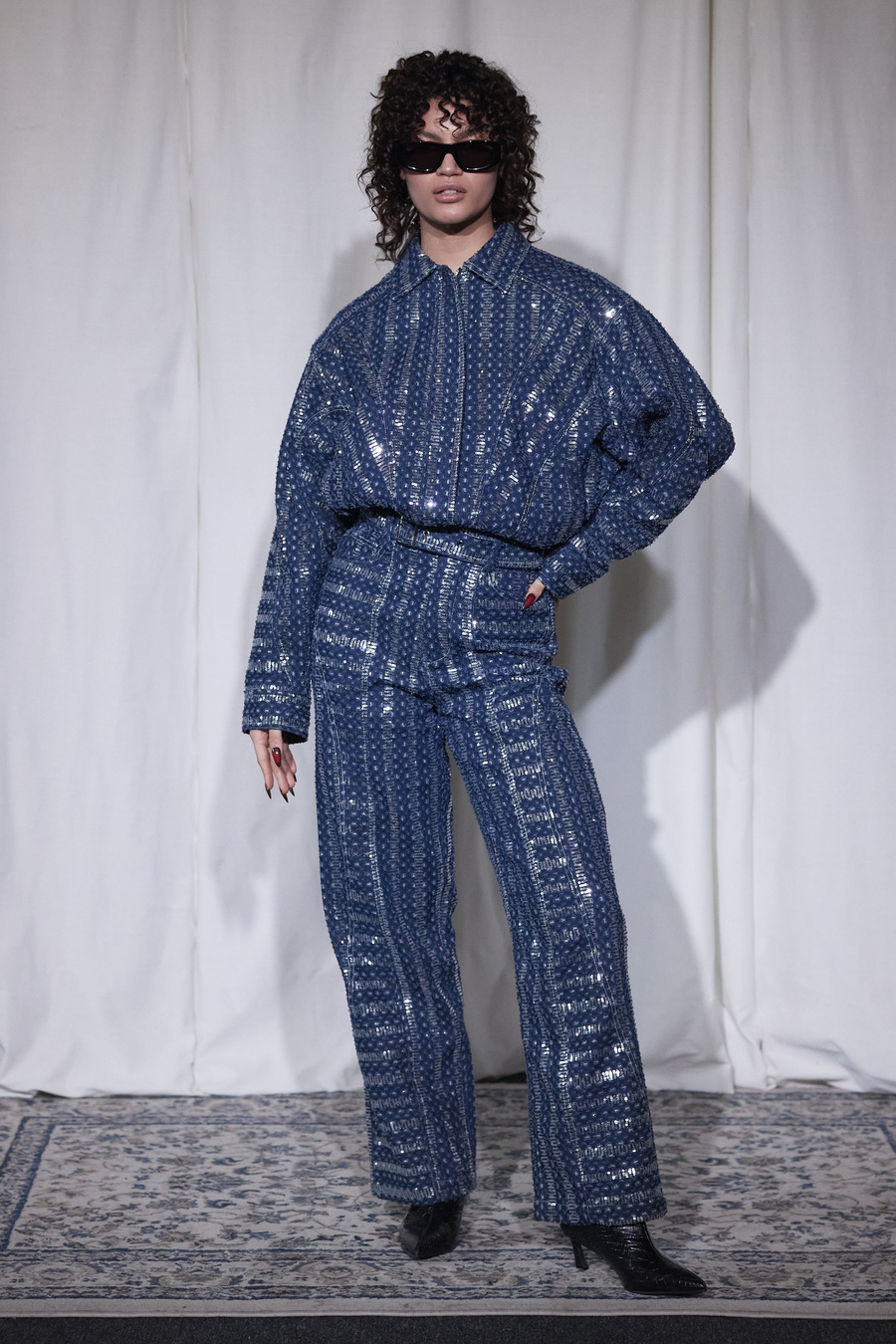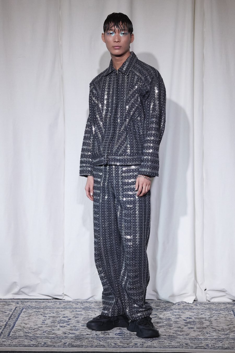 But it’s not just the textiles that have us swooning. RAY CHU’s penchant for 3D printing brings sculptural, organic shapes to life, inspired by the intricate structures of the Blue Cypress. This play on form results in bold, artistic designs that also maintain a sense of fluidity. Picture this: sequin pinstripes, colourful vegan leather, and effortlessly chic co-ord sets with a playful edge. CHU’s signature style is alive and well, only this time, it’s elevated to new heights with tailored suiting and sophisticated silhouettes.