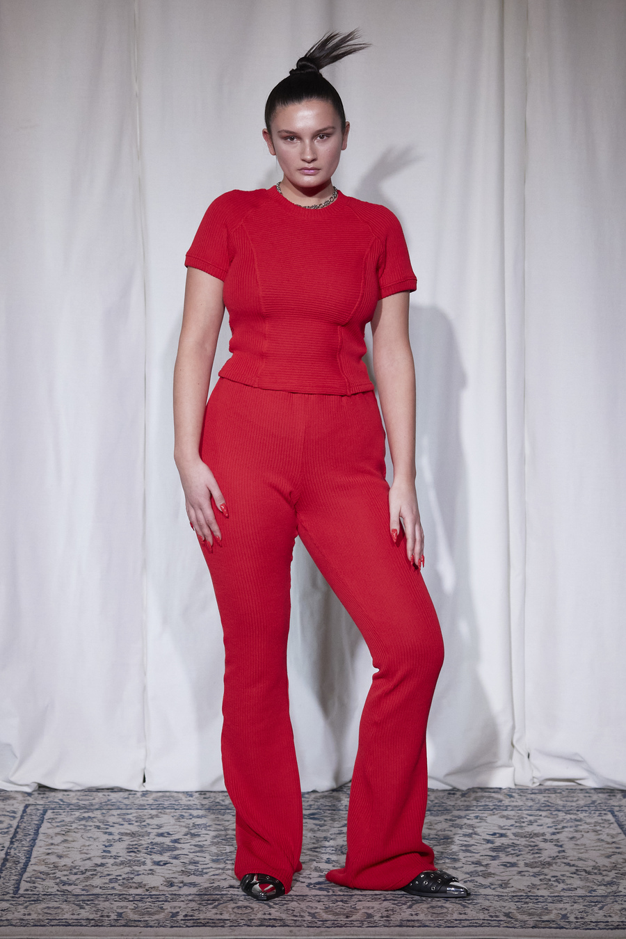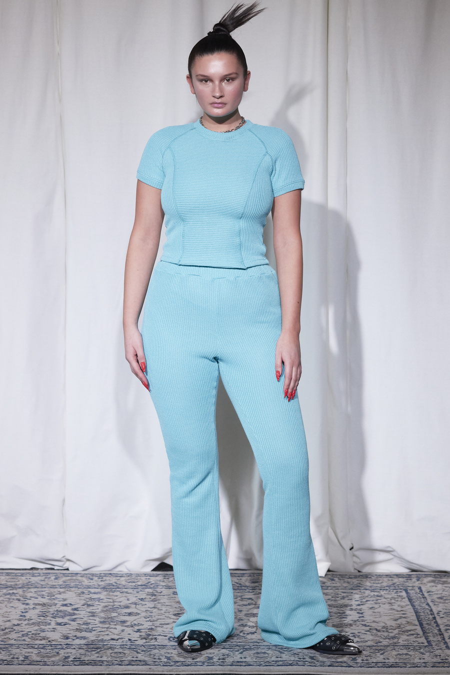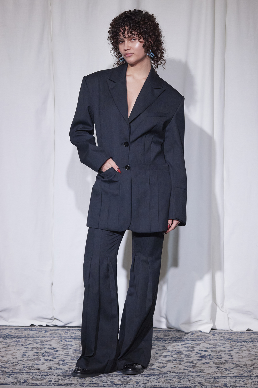 But it’s not just the textiles that have us swooning. RAY CHU’s penchant for 3D printing brings sculptural, organic shapes to life, inspired by the intricate structures of the Blue Cypress. This play on form results in bold, artistic designs that also maintain a sense of fluidity. Picture this: sequin pinstripes, colourful vegan leather, and effortlessly chic co-ord sets with a playful edge. CHU’s signature style is alive and well, only this time, it’s elevated to new heights with tailored suiting and sophisticated silhouettes.