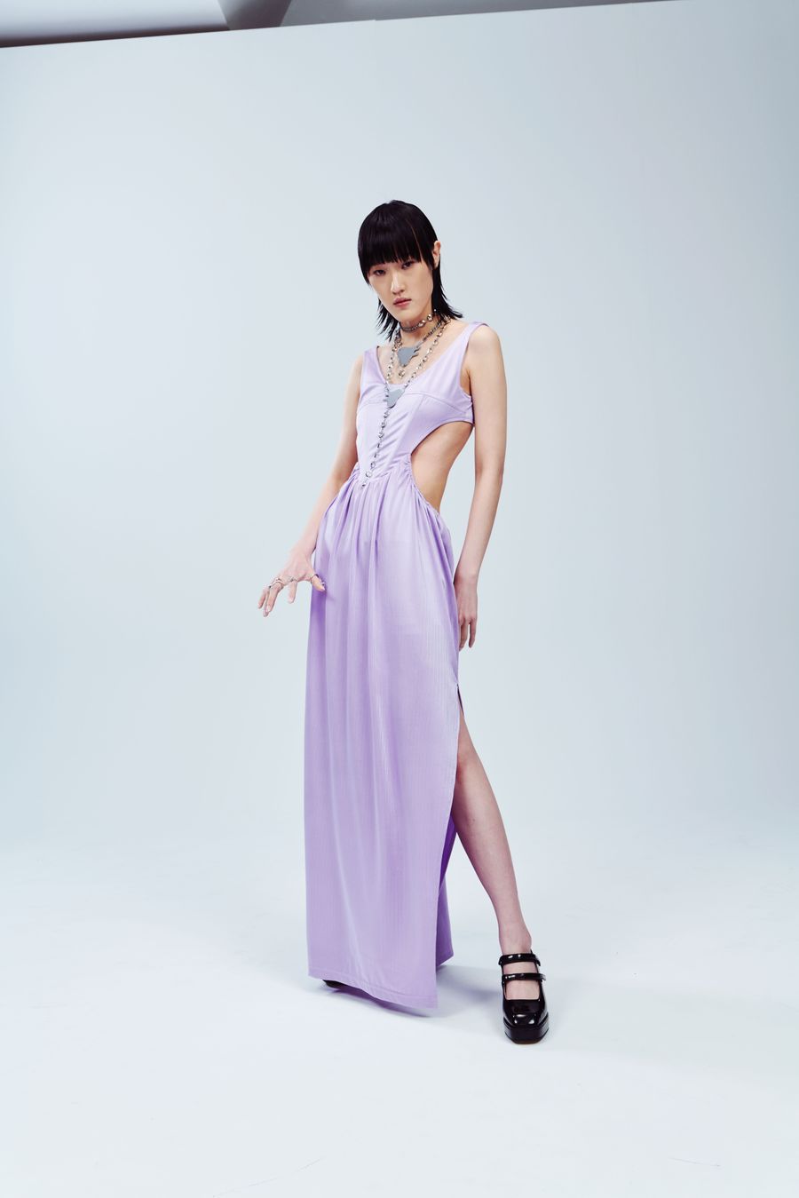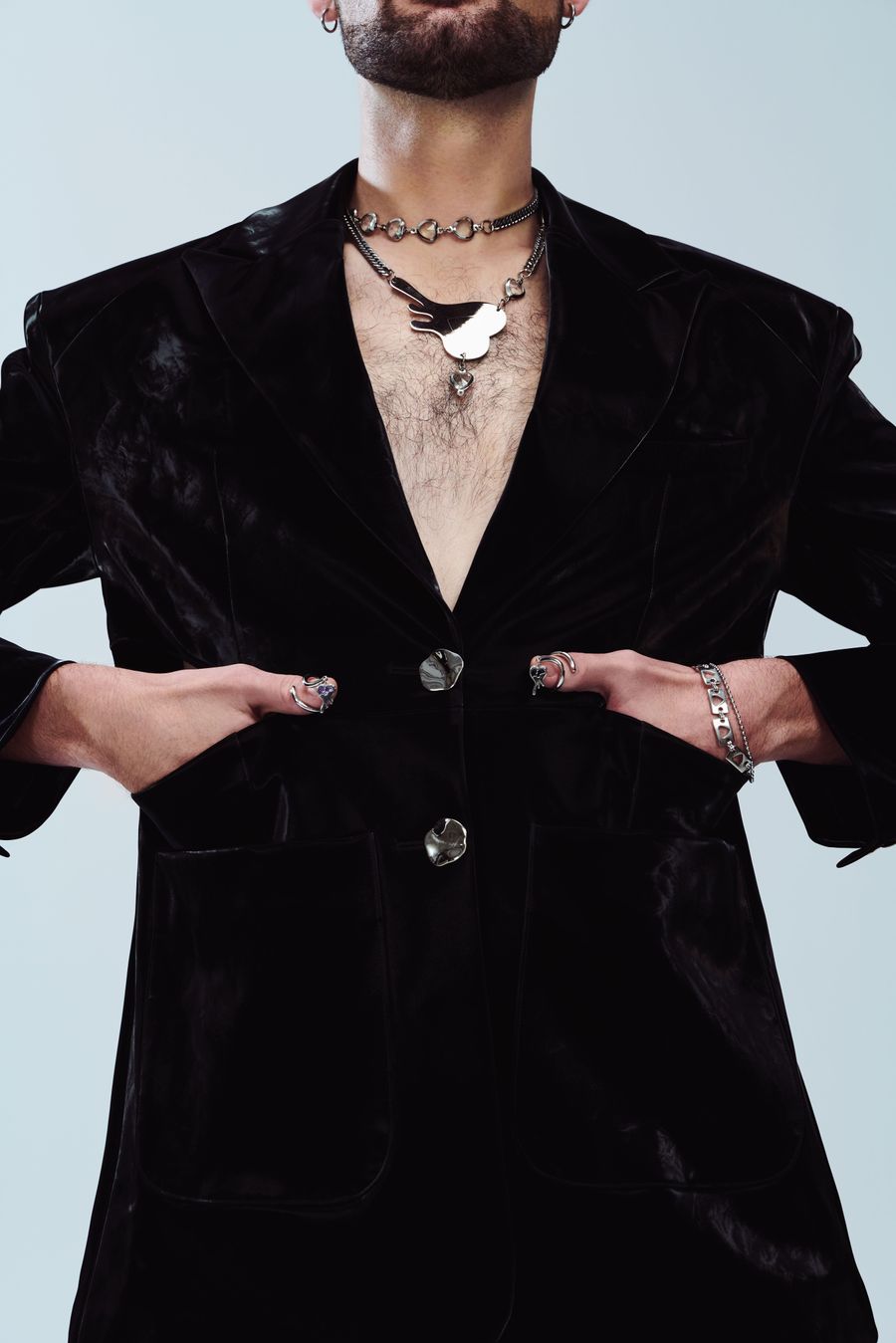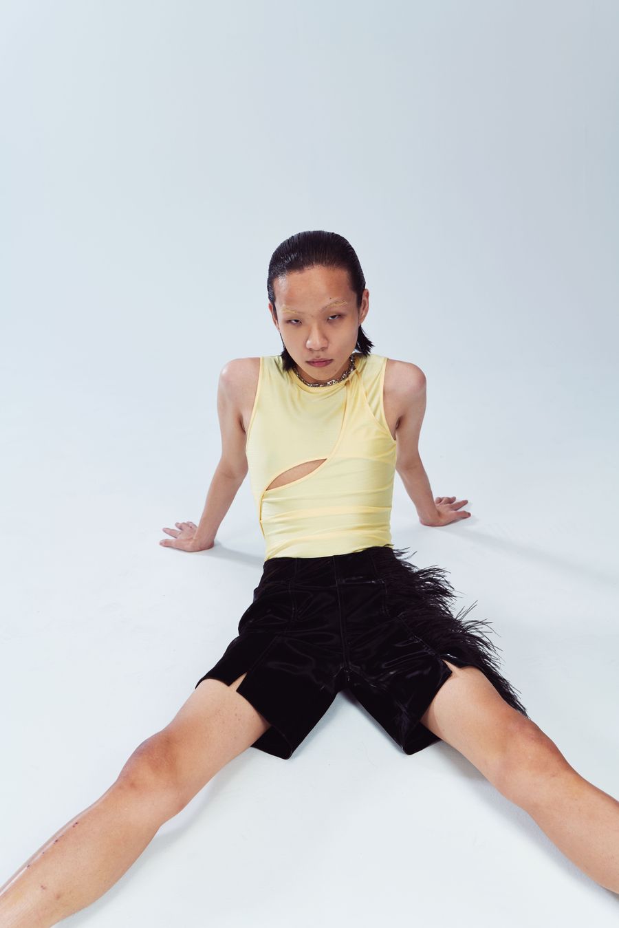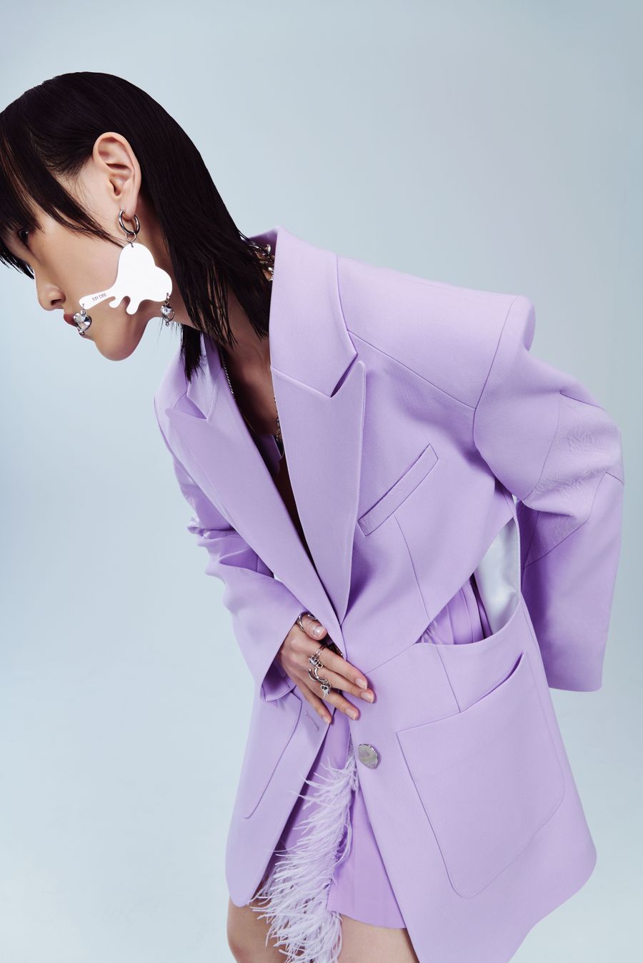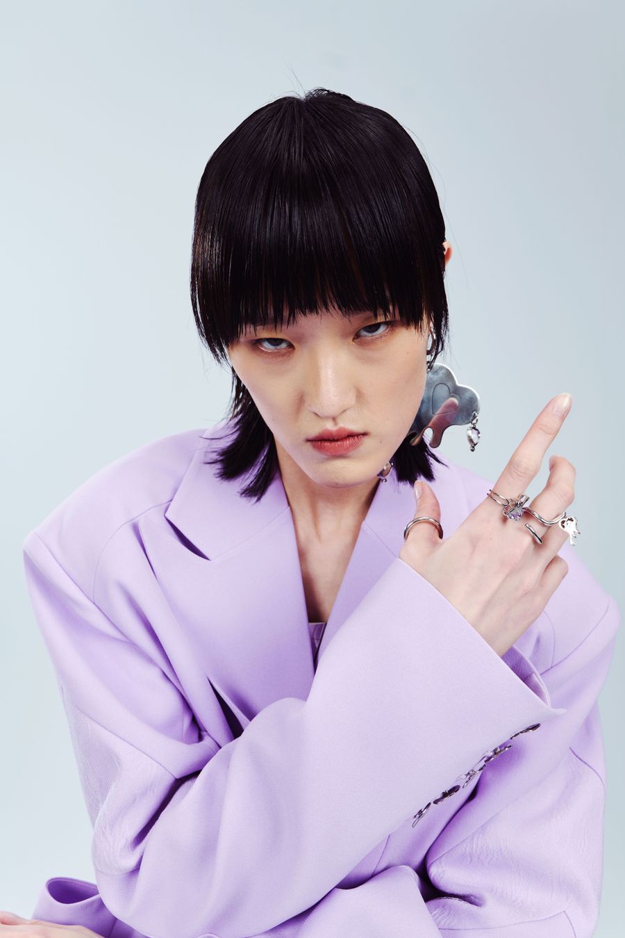 “I heart you”, the fashion film, invites LGBTQ individuals from different industries to partake, as Ray Chu strongly values inclusivity. Set in a clean back studio, the film focuses more on clothing details and abstract concepts of emotions through the individuals’ eyes. Flashing purple light adds a note of showing our own personal affirmations to face our true feelings.