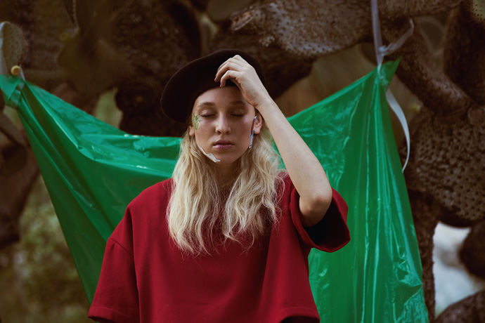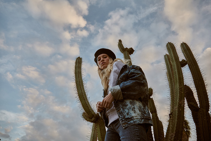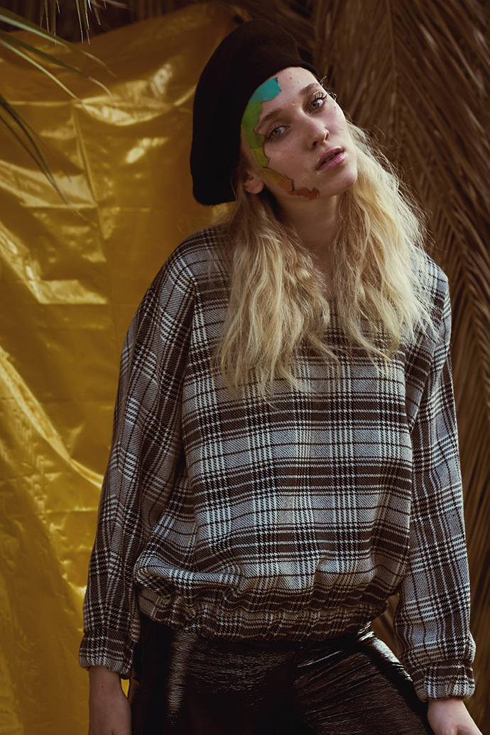 A KALTBLUT exclusive womenswear editorial. Photography by Cristina Jiménez Rey. Model is Emi Rus signed to 5th Avenue Agency. Make up and hair by Regina Khanipova. Styling by Garazi Cortazar. Fashion by Bershka, Zara, Dickies, Armani, Paella Showroom.