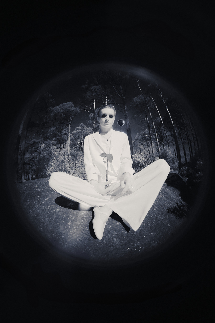 At the heart of the story lies the lunar eclipse, a vivid metaphor drawn from the alchemical concept of the coniunctio. The veiling and unveiling of light during an eclipse reflects the dissolution and re-emergence of self-image that defines personal transformation. Infrared photography deepens this narrative – revealing the hidden within the visible and mirroring a quiet, internal evolution that unfolds beneath the surface.