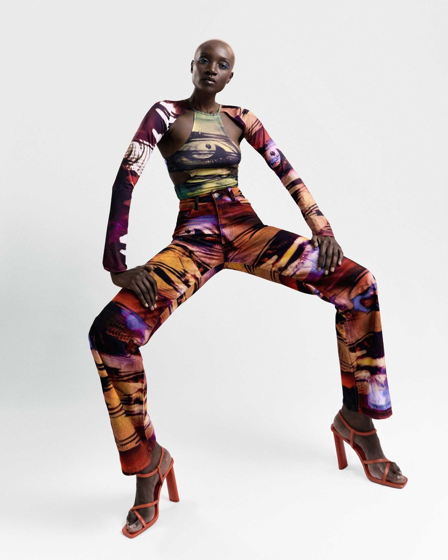 “Re-generation X” is a nostalgic Y2 K-inspired story featuring, although not exclusively, brands and designers that have a focus on sustainability, upcycling, and regeneration in fashion. Photography by Terence Whitaker. The model is Kendi signed at M4Models. Styling by Emily Hawkins. Hair and Makeup by Samantha Pottmaier. A KALTBLUT exclusive.