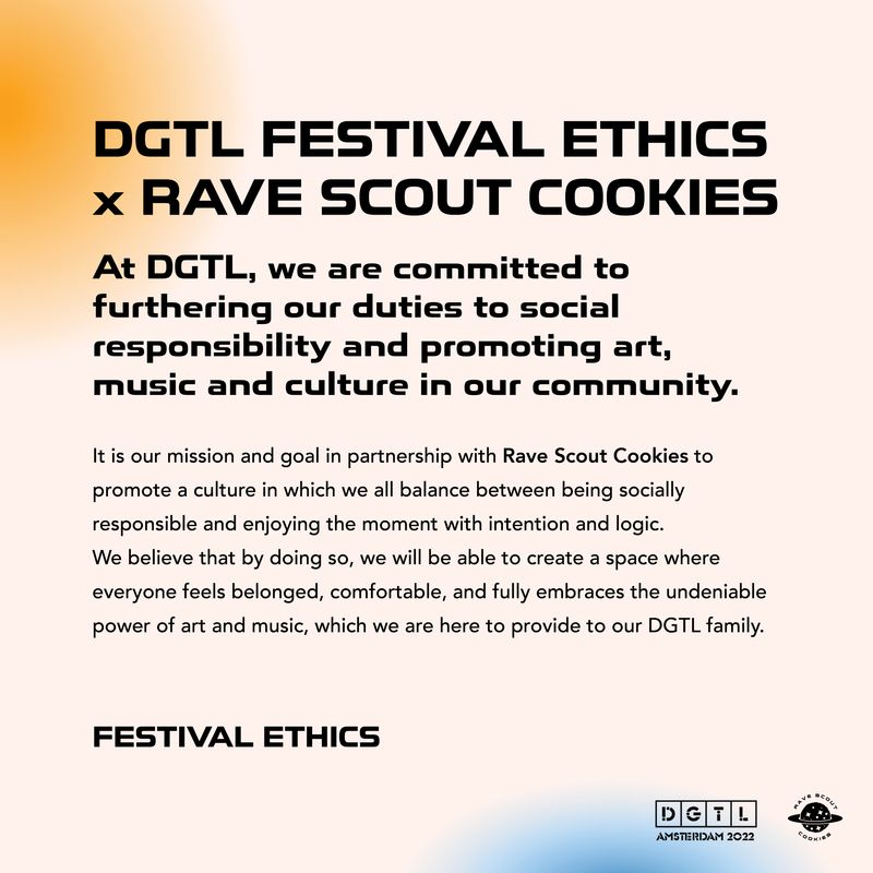 Rave Scout Cookie founder Salman Jaberi, who has been featured in our In conversation with… 7 digital issue was at the festival to enforce Rave Scout Cookies’ vision to the festival and create a safe space for everyone to enjoy the music and art without any threats or discomfort. It seems DGTL has really worked hard to train their staff and hire enough people that are able to assist if anything is needed. It also seemed like a very peaceful and open festival with no major incidents.