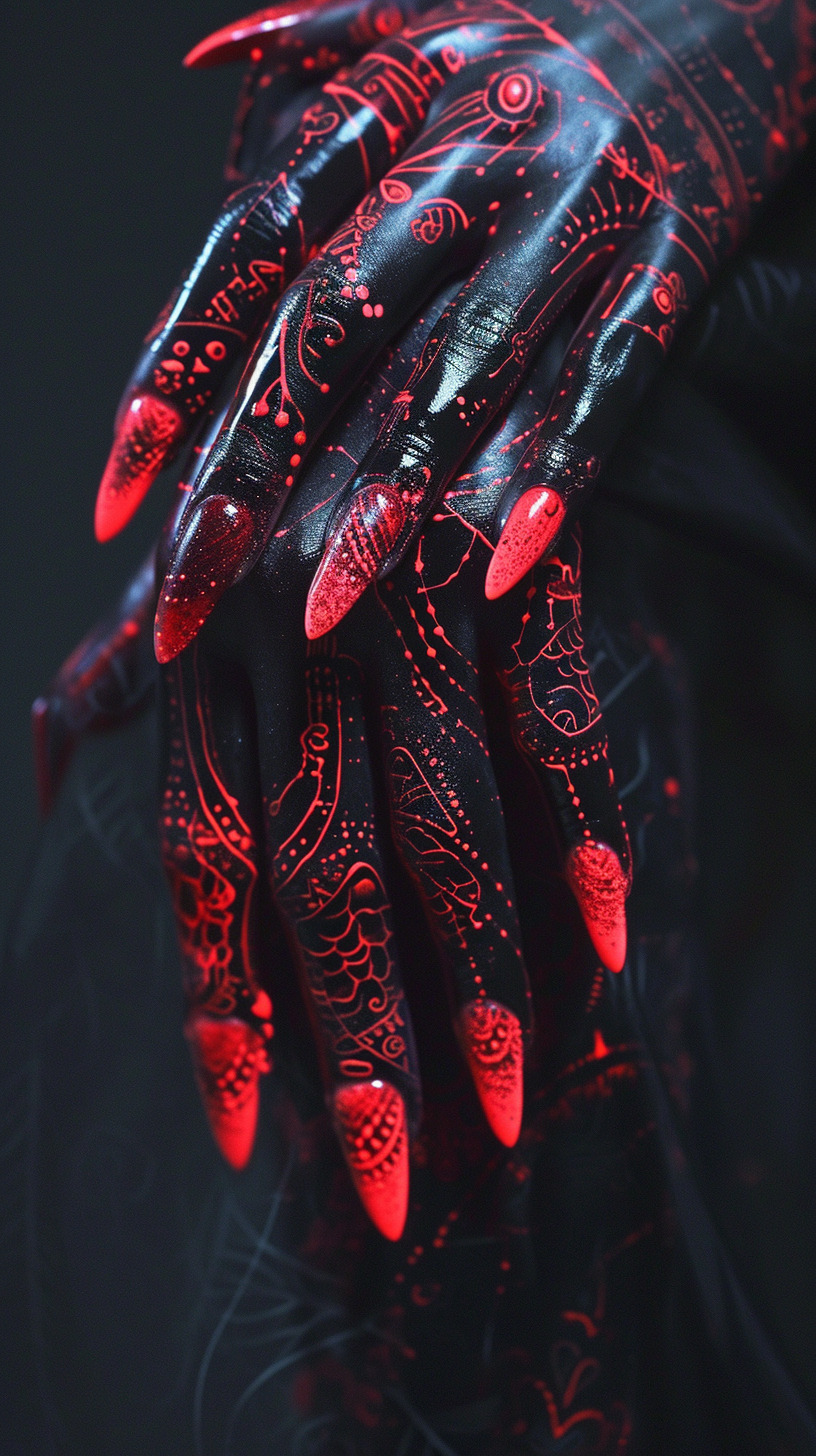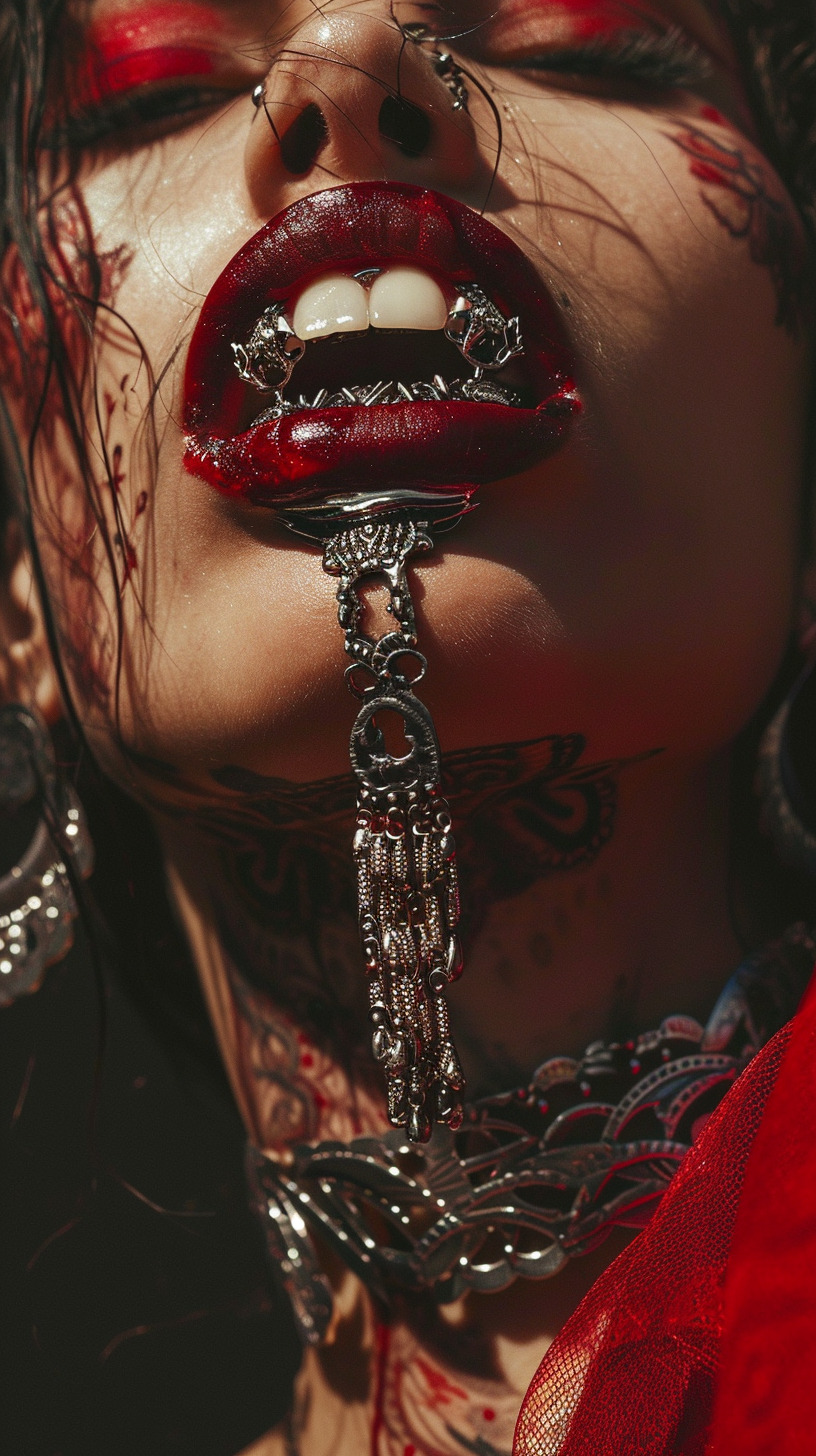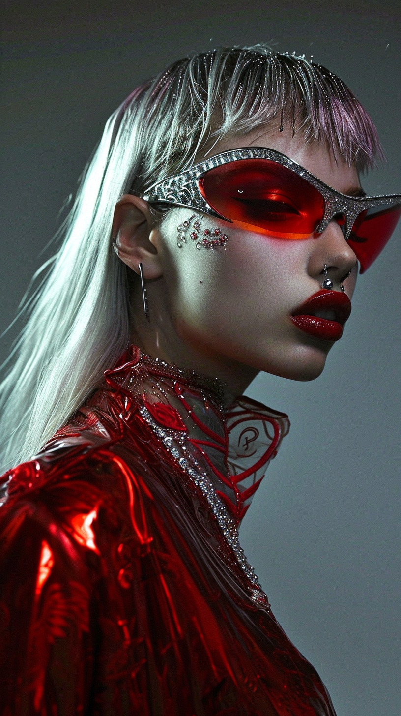 This AI editorial named “Red Dharma” is a visual spell to awaken the sacred. Inspired by Asian folklore and ancient tales, this series is a tribute to deities and entities like Dakinis, shedding light on ancestral traditions like the apsara hand dance. Here, traditional ornaments are rethought with modern styling and imagery.