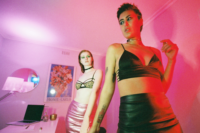 I shot this story in a small room, at the back of my studio, using LED light and red gels. First scene is when the two women meet at an office, then Marilyn takes Luna home. We shot at the back of the building for the street look. Third room is in Marilyn bedroom and fourth is Marilyn’s living room. There is a playful connection between the two. At first we are thinking that Marilyn is takin over Luna, but it’s actually Luna who is in control of this relationship.” says Albalone.