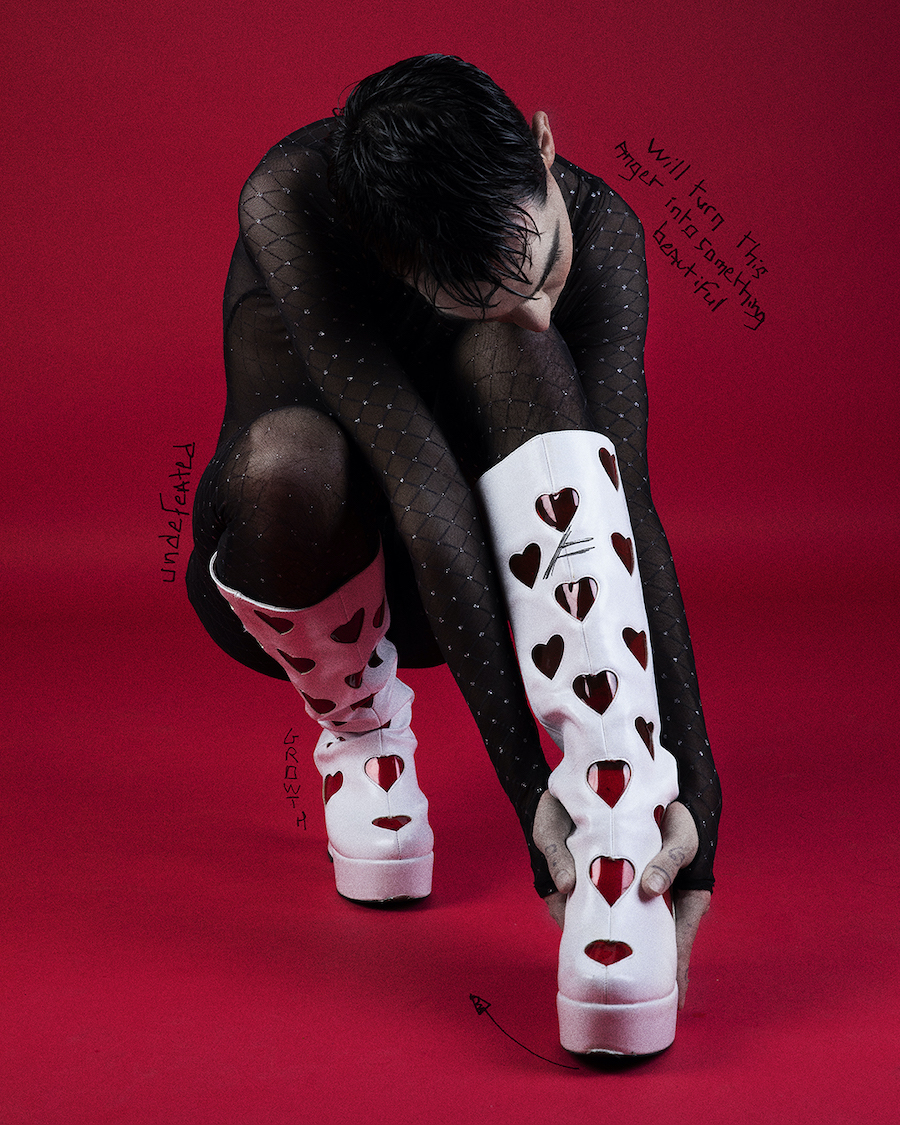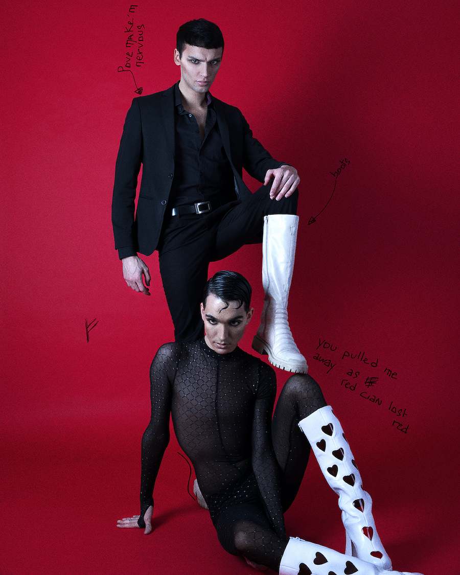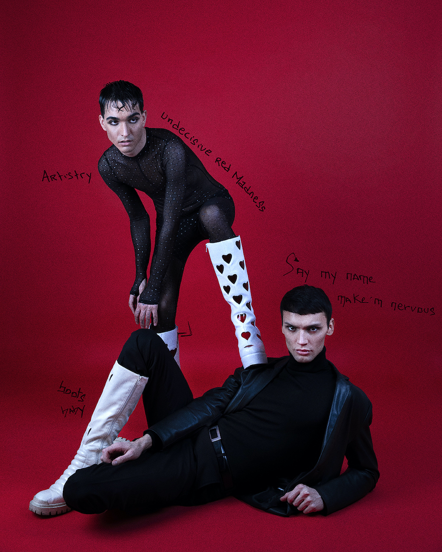 Red Madness is a photo series written and directed by visual artist Hugo Marongiu. As a summary of a relationship with sketches and doodles protected by runes. A thin line between love and hate. Models are Shone Jimenez signed at Studio Paris and Your Angel Models and Hugo Marongiu. A KALTBLUT exclusive.