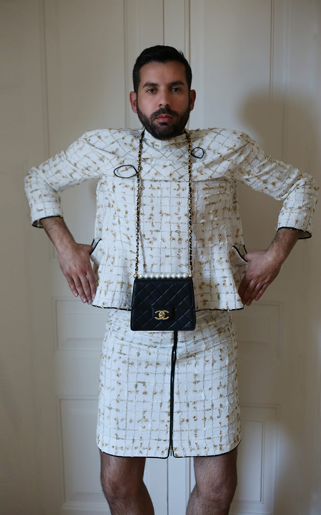 A KALTBLUT exclusive. Photography by Scott Salinger. Styling by Victor Von Schwarz and Angel Redouan. Model is Angel Redouan. Brands are Gucci, Chanel, Victor Von Schwarz, Xevi Fernandez, Ynes Suelves, Aldo Martins, Alessandro Enriquez and Yoahlimited.