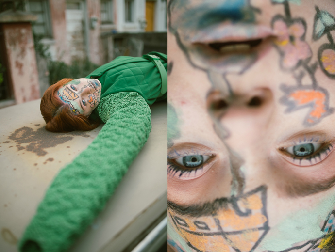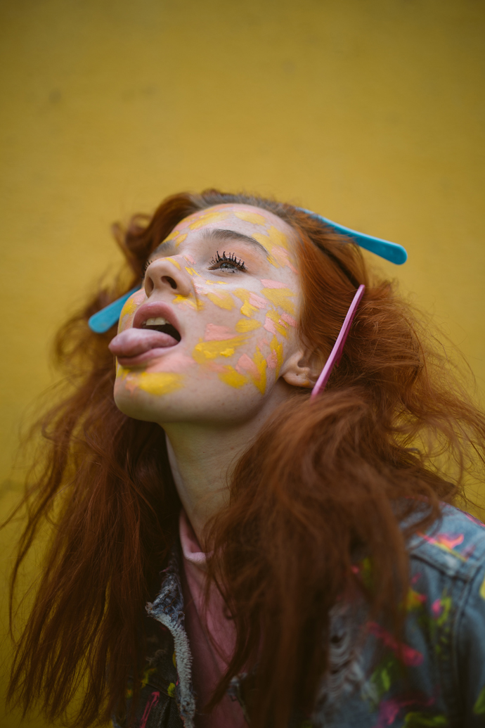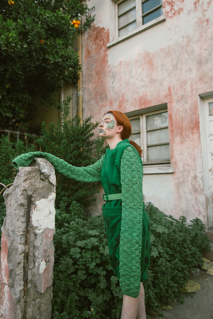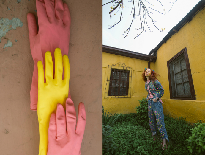 A KALTBLUT exclusive womenswear editorial. Photography and art direction by Ürsula Madariaga. Styling by Mima Zamall. Make up and Hair by Macka Núñez. Model is Florencia Maass signed to Elite Model Chile. “Réel ef Naïf, is inspired by the avant-garde movement, we explore abstract expressionism, surrealism and naïf, playing in the same way as artists, from makeup, styling, art and photography. We wanted to represent a caring woman, who lives day by day with her memories of childhood, that runs through a patrimonial neighborhood of Chile called Independence. We love infinitely your magazine, the concept of femininity and above all that stereotypes do not exist.” says Mima Zamall.
