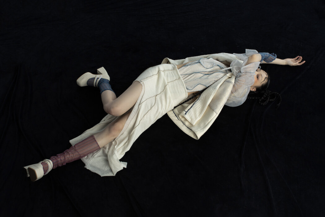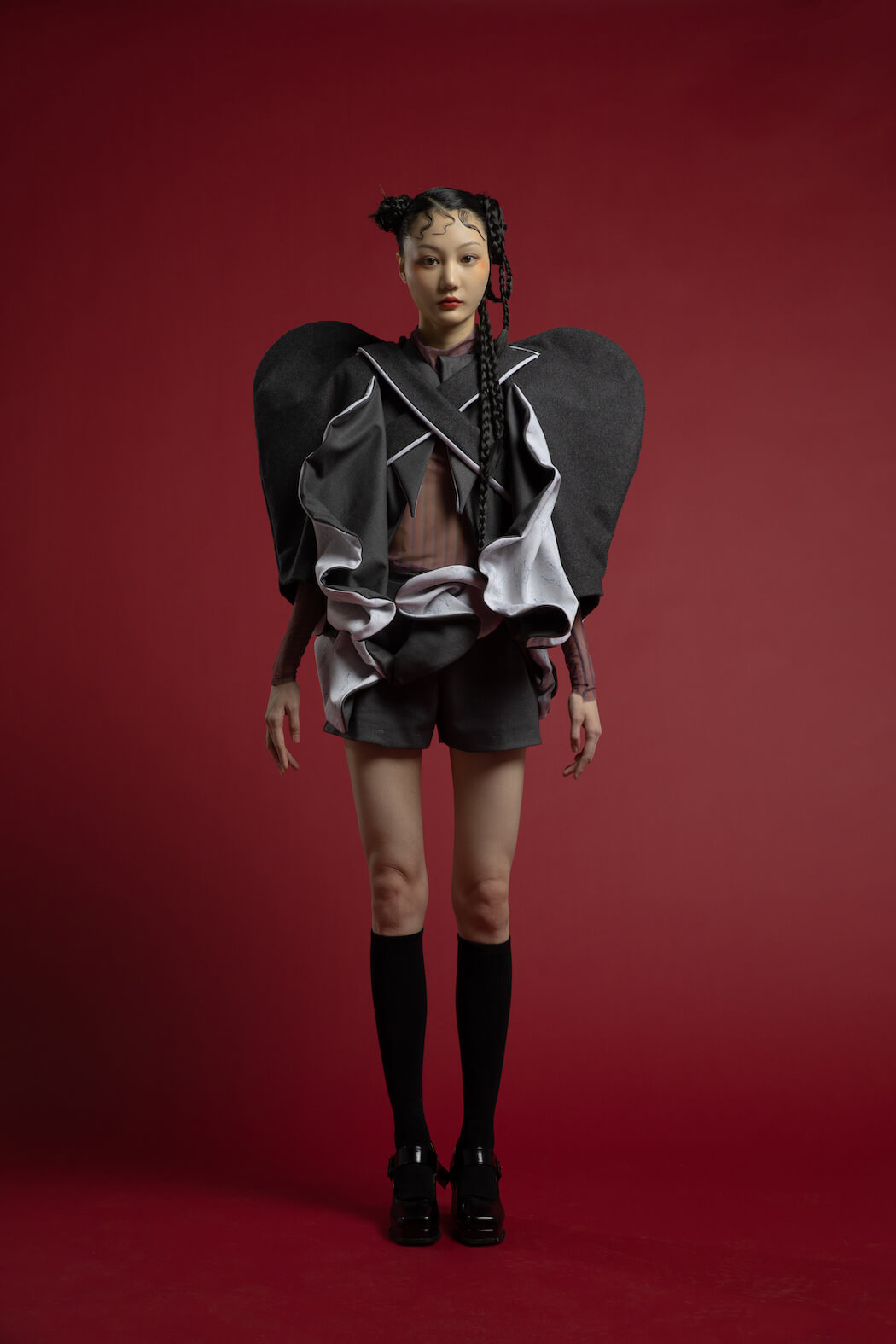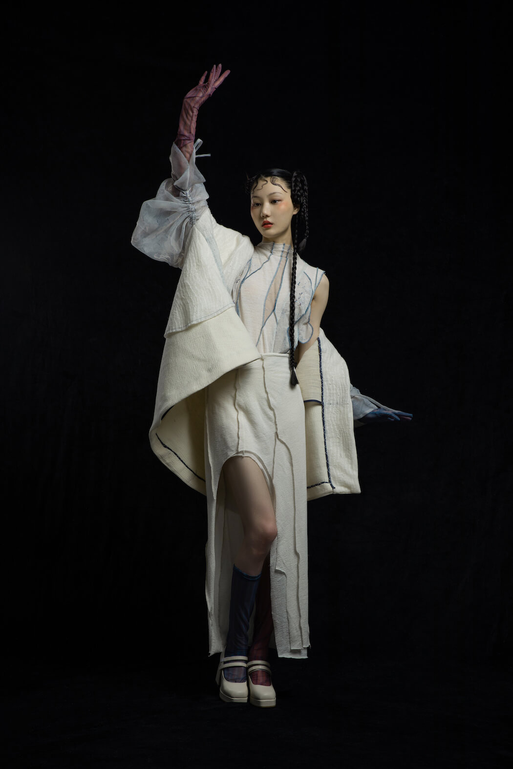 I did visual research based on Meiji era Japanese art & culture, their traditional garment–kimono and artwork related to silk production and silkworm especially Ruth Asawa.” *Yuxian He