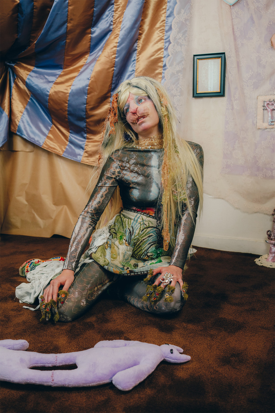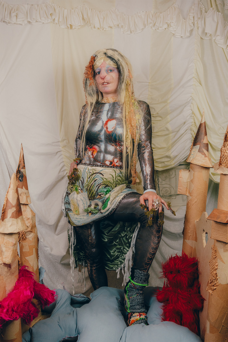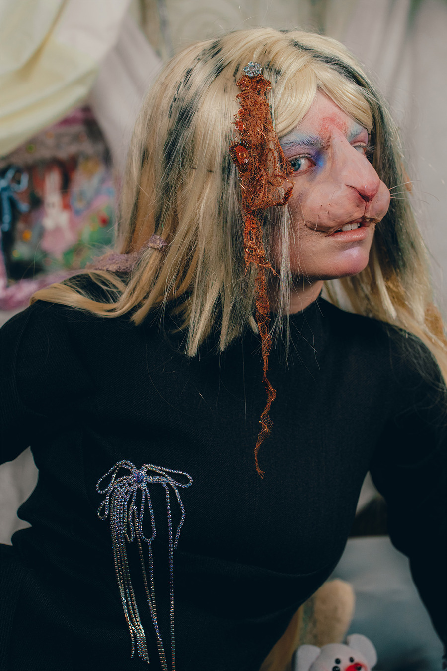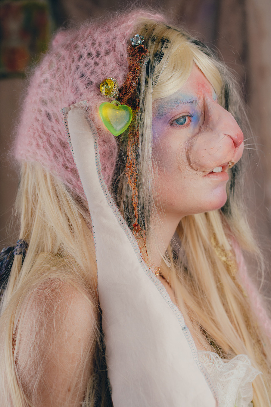 A KALTBLUT exclusive. Art Direction by Alicia Mineaud & Naouel Bouzenounet. Photography by Daryl Dschang. The model is Zoé Mercier. MUA & Hair by Colin Barbeau Martinez. FX Prosthesis by Elyoun Auvray. Fashion by Victor Clavelly, Liana Paberza, Raphaël Everdeen, Kenza Iatrides, Julia Bonich, Kadifé, LXhere, Alicia Mineaud, Nodress, Ashley Williams London, Legssss, Praying, Dünya, Forbitches, Collina Strada, Melissa x Y/Project, Jaded London.