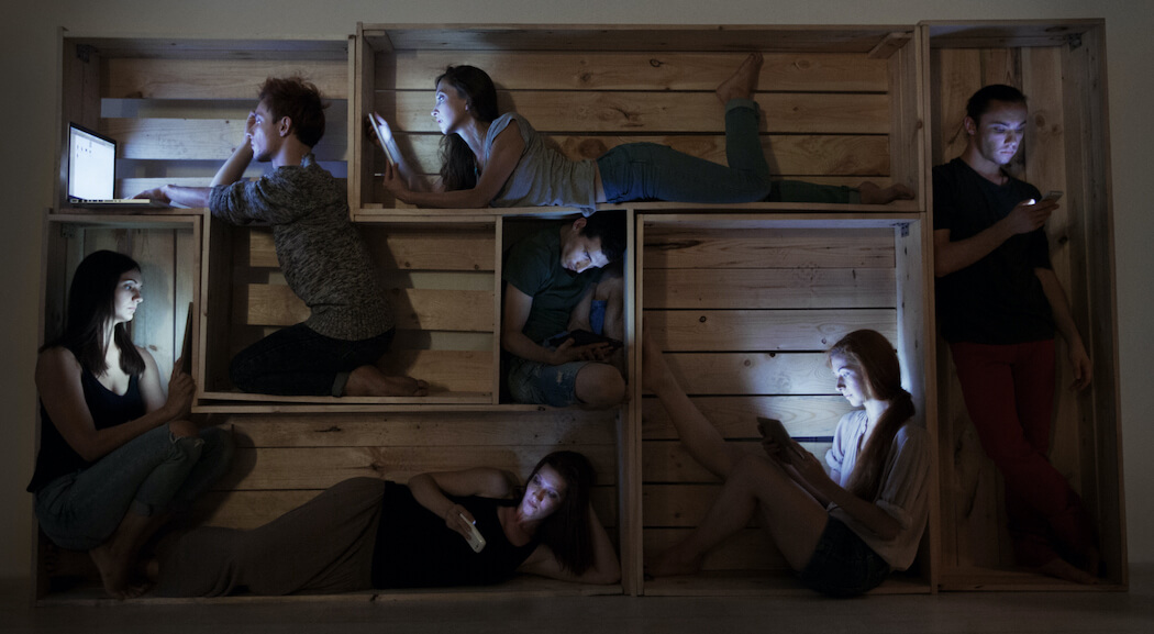 The first set, titled The Melancholy Rooms, was originally created as part of exhibition space. The stills focus on the idea of living in a hyper-connected society, in which technology plays a vital role in how we relate to one another. Our devices are meant to bring us closer, but often the result is broader and more superficial relationships leaving us feeling disconnected. It’s only when the chance to meet in real life is taken away that we begin to fully understand the value and potential of this technology.
