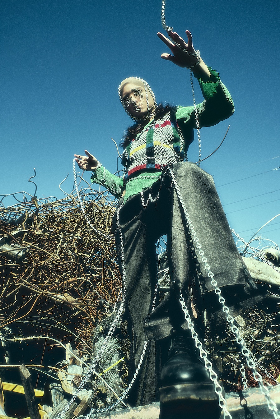 Each garment is an act of reconstruction, a dialogue between matter and emotion, between the inanimate and the human. Irregular lines, contrasting textures, and unfinished details evoke the vulnerability and strength of a being rejected, misunderstood, and marginalised for its appearance.