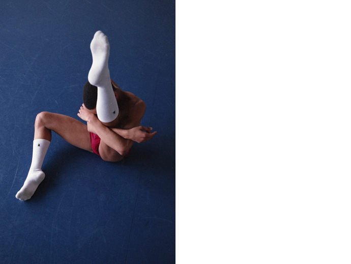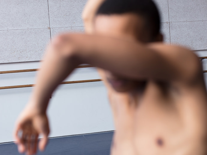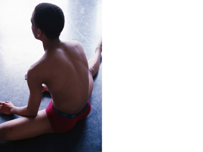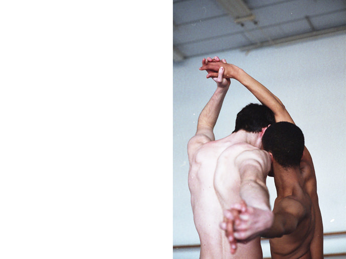 Gerardo Vizmanos is a Spanish photographer currently based between London and New York. His work has become known in the dance and fashion industries for images capturing movement and bodies, specially in the male form. “Rehearsal” is a series of photos taken with two ballet dancers at the Academy of Theatre and Dance of Amsterdam. Synchronization, cooperation and solitude are regular parts of the work of dancers. The images combine film and digital images on different formats.