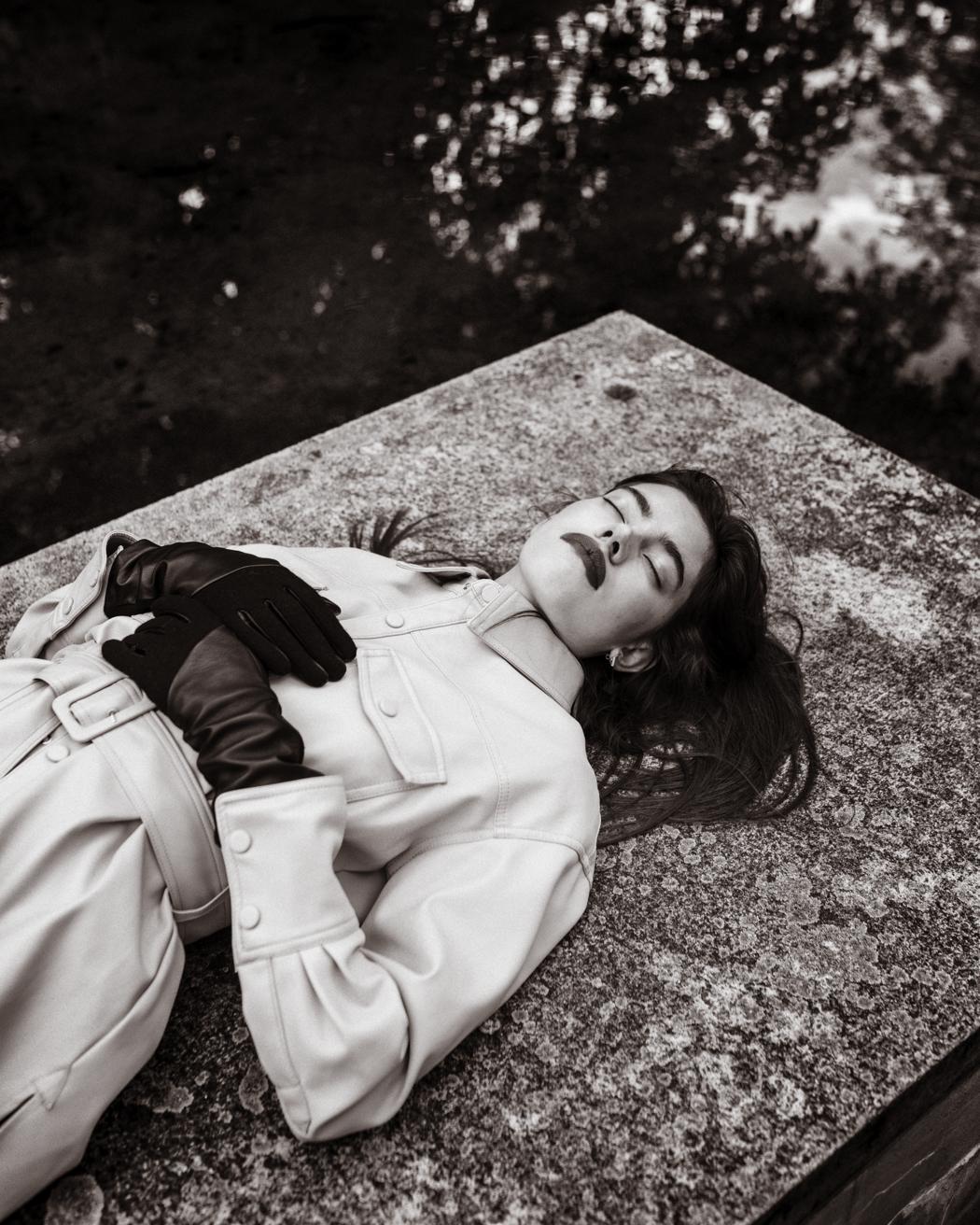 Resting Grounds editorial was inspired by the modernists chapel Friedhofkapelle Eichbühl located in Zürich, Switzerland designed by Fred Eicher. The sharp and minimalistic architecture of the surroundings marked with granite sculptures and water ponds bring calmness and feeling of eternity.