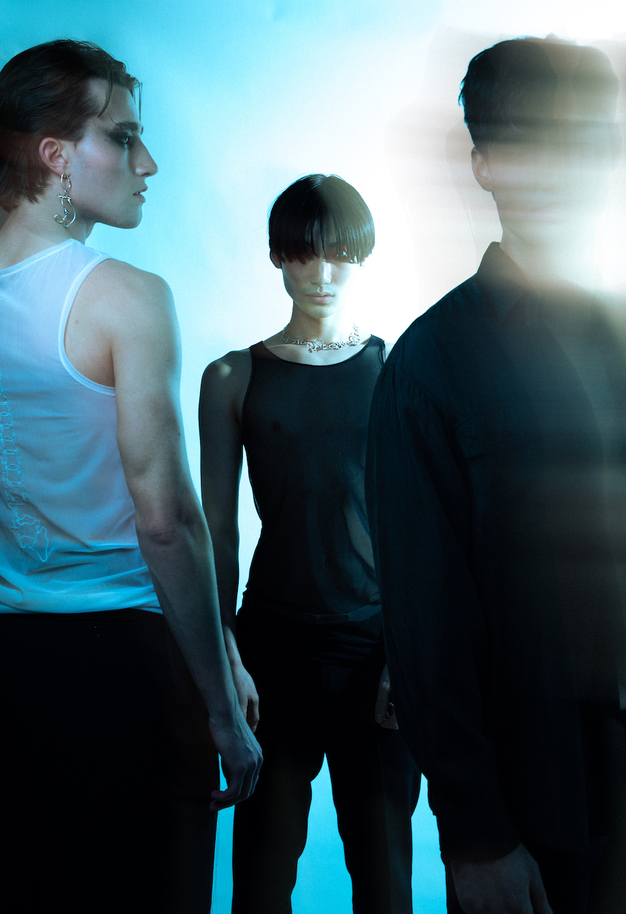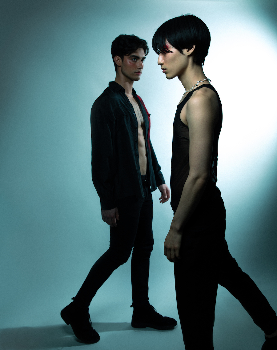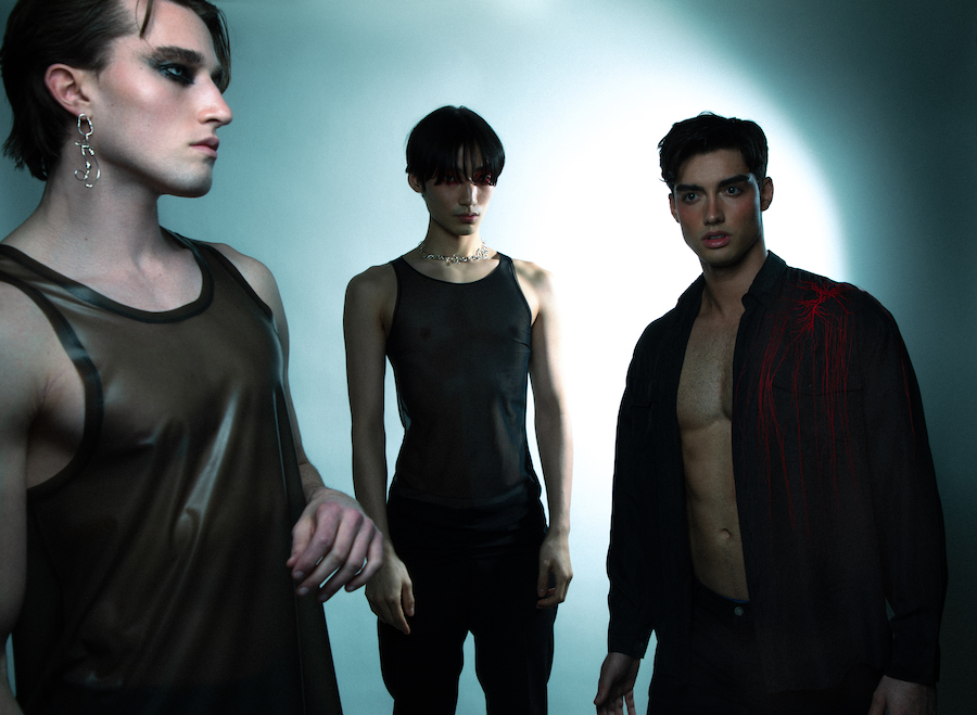 A conceptual editorial inspired by vampire heartthrobs and bloodsuckers. Photography by Isha van Dijk. Concept & styling by Michael Geertzen. Hair & make-up by Minou Meijers. Production assisting by Isabelle van den Broek. The models are Enzo, Baek, and Pascal. A KALTBLUT exclusive.