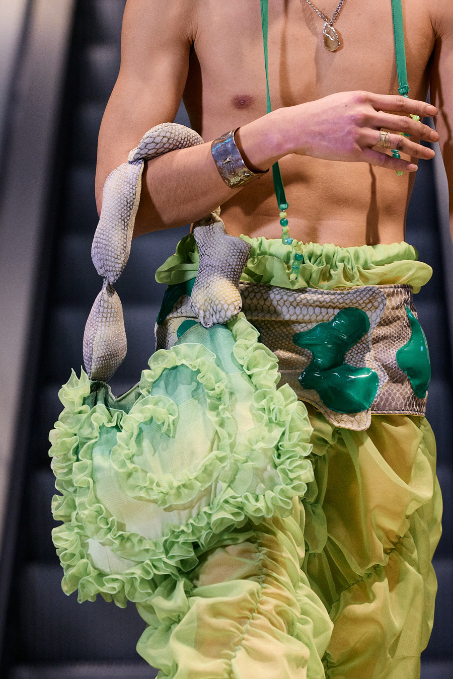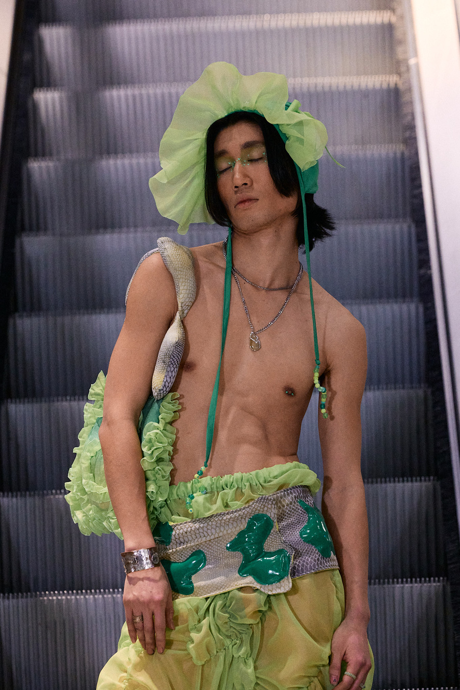 Ascension to the avant-garde could not have been represented better than by the collaboration between @dan0m00n & @ingrato.cl. Dubbed “7/11”, in a stroke of conceptual genius combining the names of two unique collections—$3vEn & 11—they wove sustainability with style to present fully upcycled collections. It was as much a showcase as it was a statement: fashion can lead the way to a greener future.