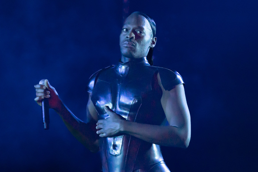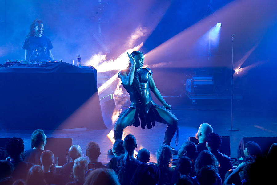 Following 33, the evening continued with one of the most visually striking and literally bloody shows was the world premiere of Alto Arc’s live performance. Their approach to medieval music, metal, rave and club delivered their own, twisted take on an Eastern Passion Play. This supergroup consists of Deafheaven frontman George Clarke, maverick pop producer Danny L Harle, Trayer Tryon from Hundred Waters, and make-up artist Isamaya Ffrench.