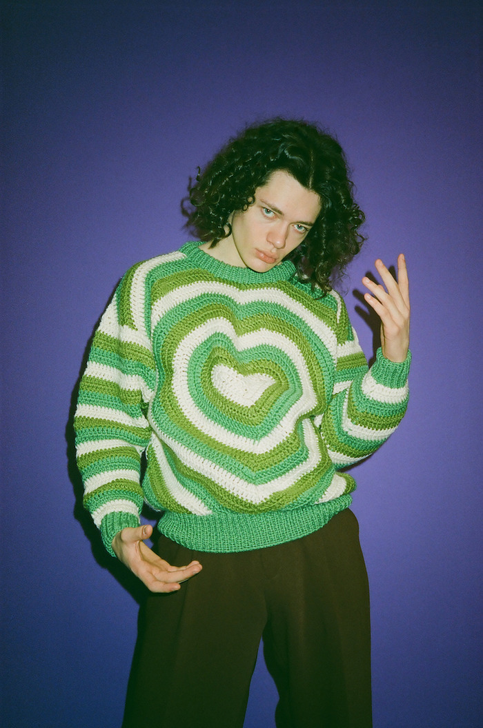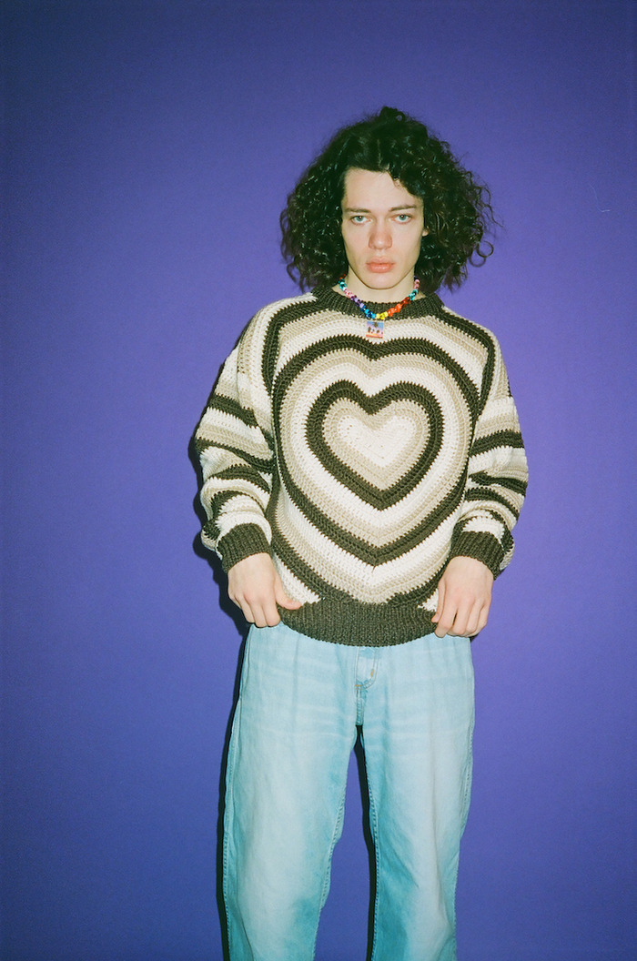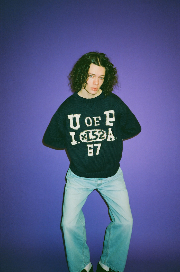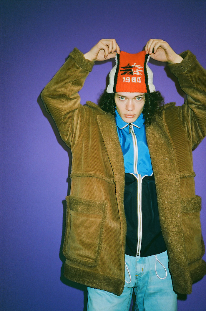 Designer Shohei Kimura of “RICE NINE TEN” presents the new Fall/Winter 2023 collection. “RICE NINE TEN” is a Tokio-based brand. The theme of the new collection is “Lucky find at the Thrift Shop”. There are many lineups of sporty items made with various knitting techniques.
