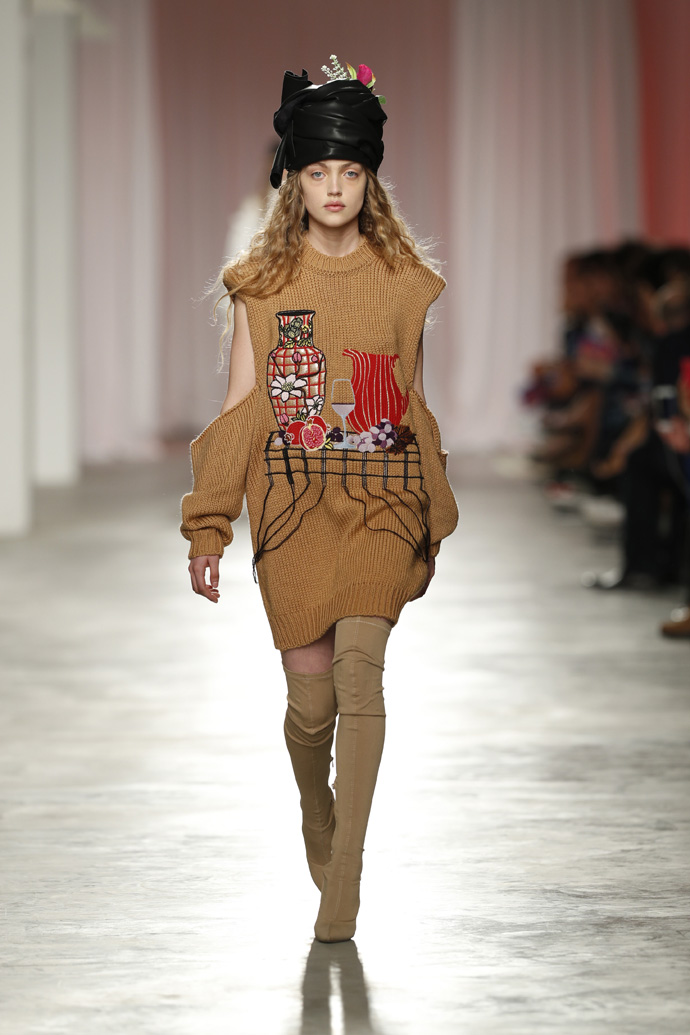 A One To Watch label from ModaLisboa FW 17/18 Sangue Novo! May I introduce you to Rita Afonso and her collection: I AM A VASE, BUT I SCREAM.Rita Afonso was born in Oporto, in 1983. In 2007, she graduated in Architecture from FAUP, The Faculty of Architecture of Oporto. In 2014, she graduated in Fashion Design from the Modatex school. During the fashion course, she won the Fashion Hub for Guimaraes 2012, a fashion price that gave her the opportunity to show her work as UMAPALMEIRA at the Somerset House, during the London Fashion Week. The collection “I am a vase, but I scream” intends to pay homage to all women in history that had to use their voices and scream for their rights. Specially those that wanted to be artists and were only allowed to practice the so called minor arts. Watch the full runway show below.