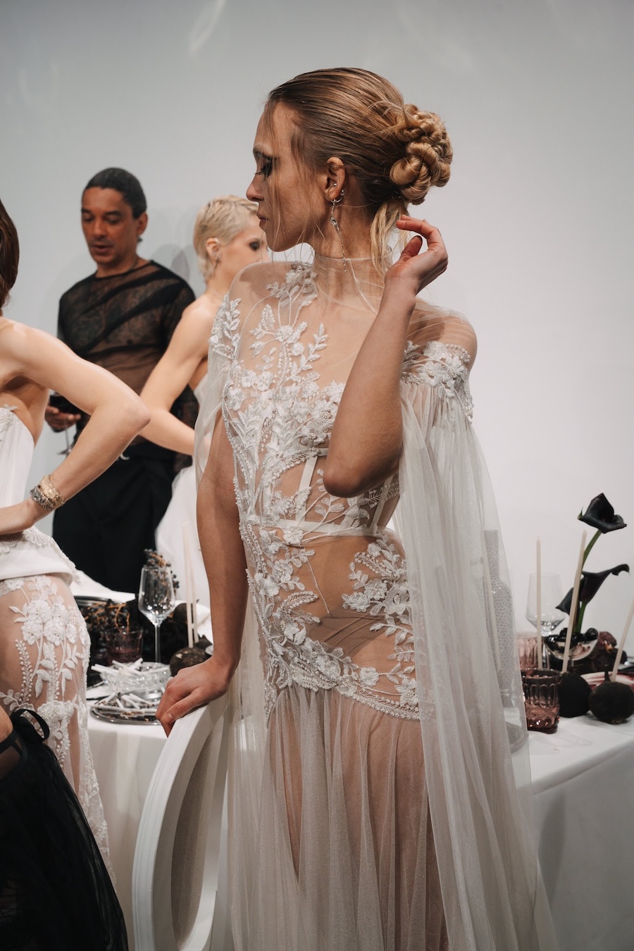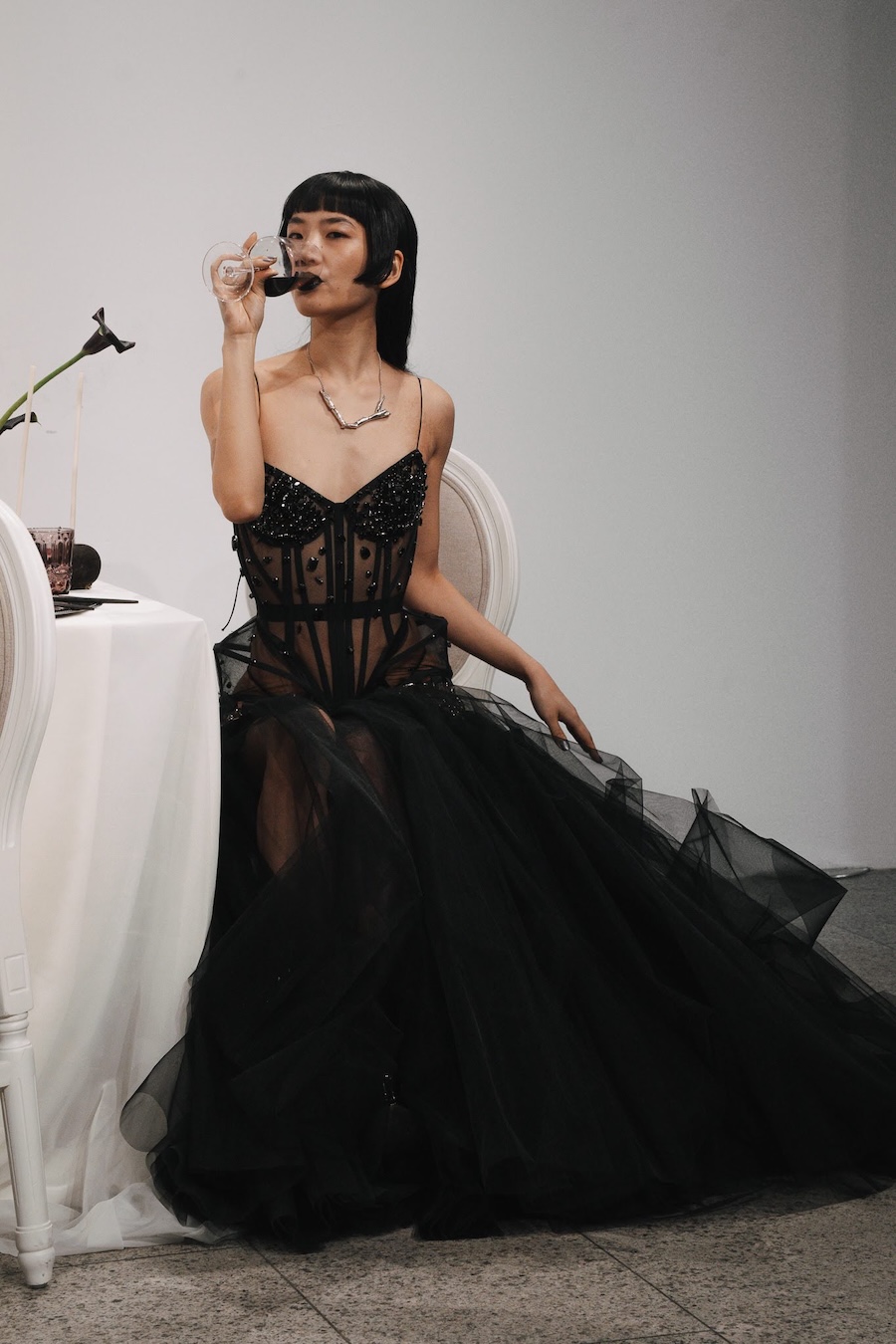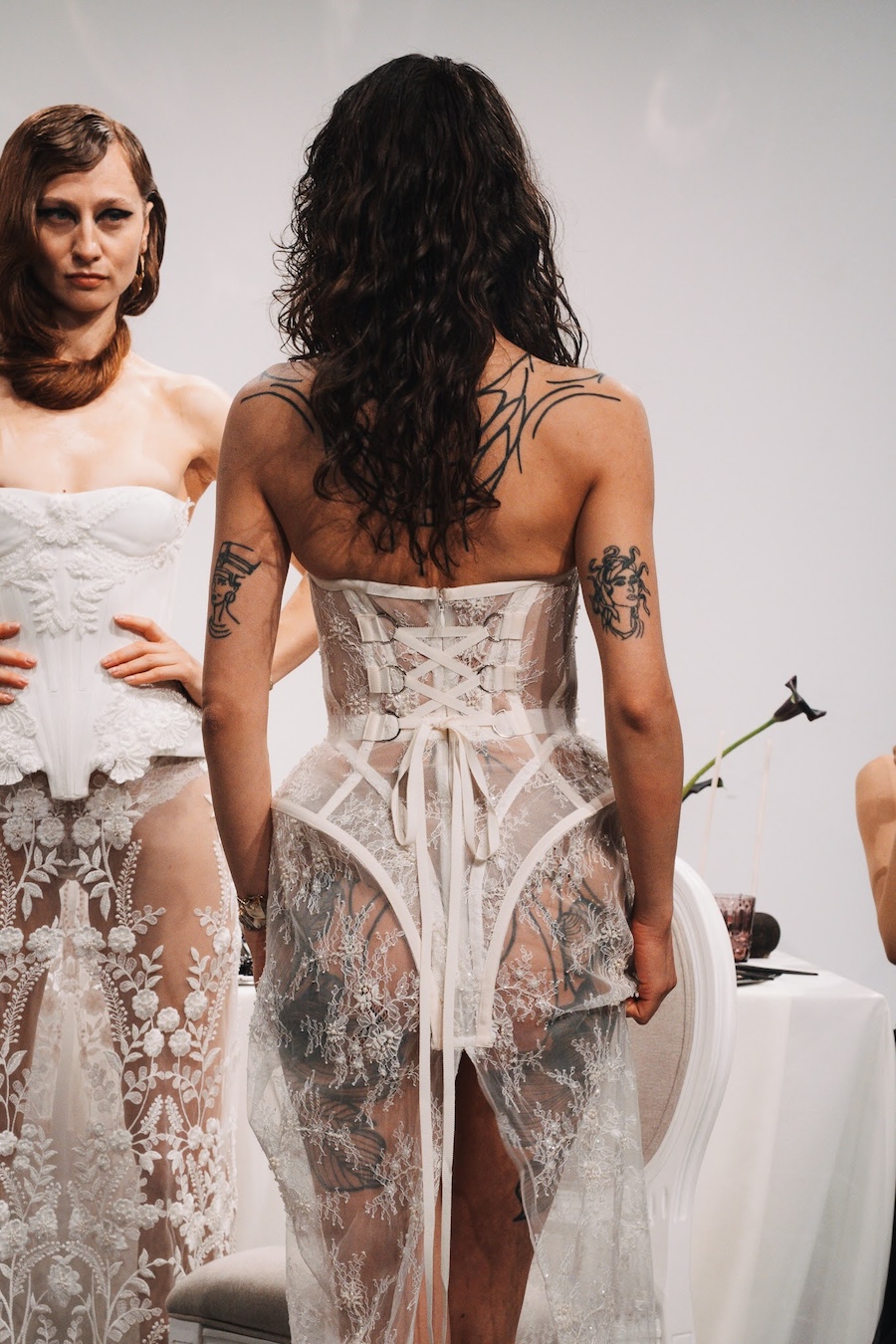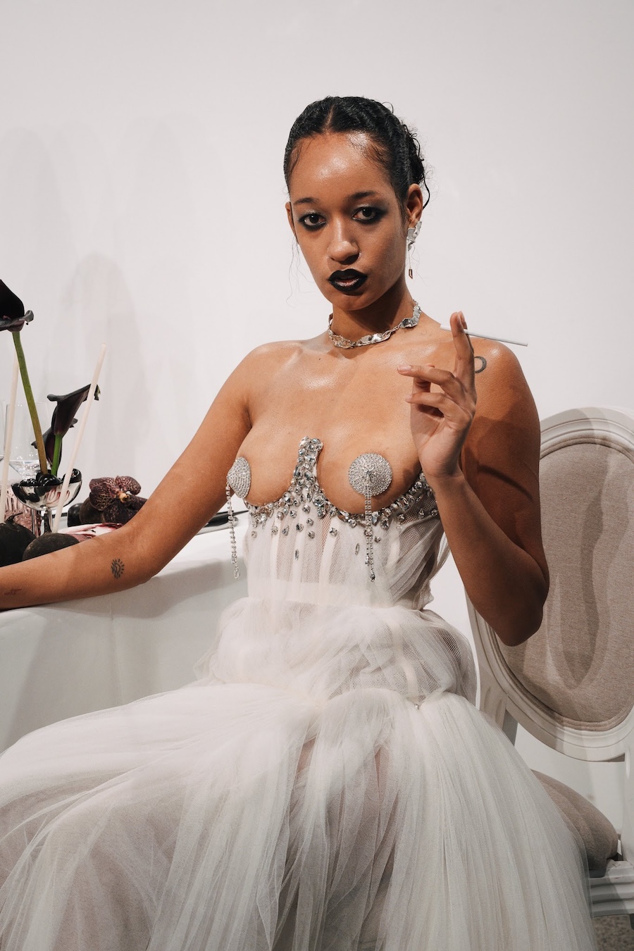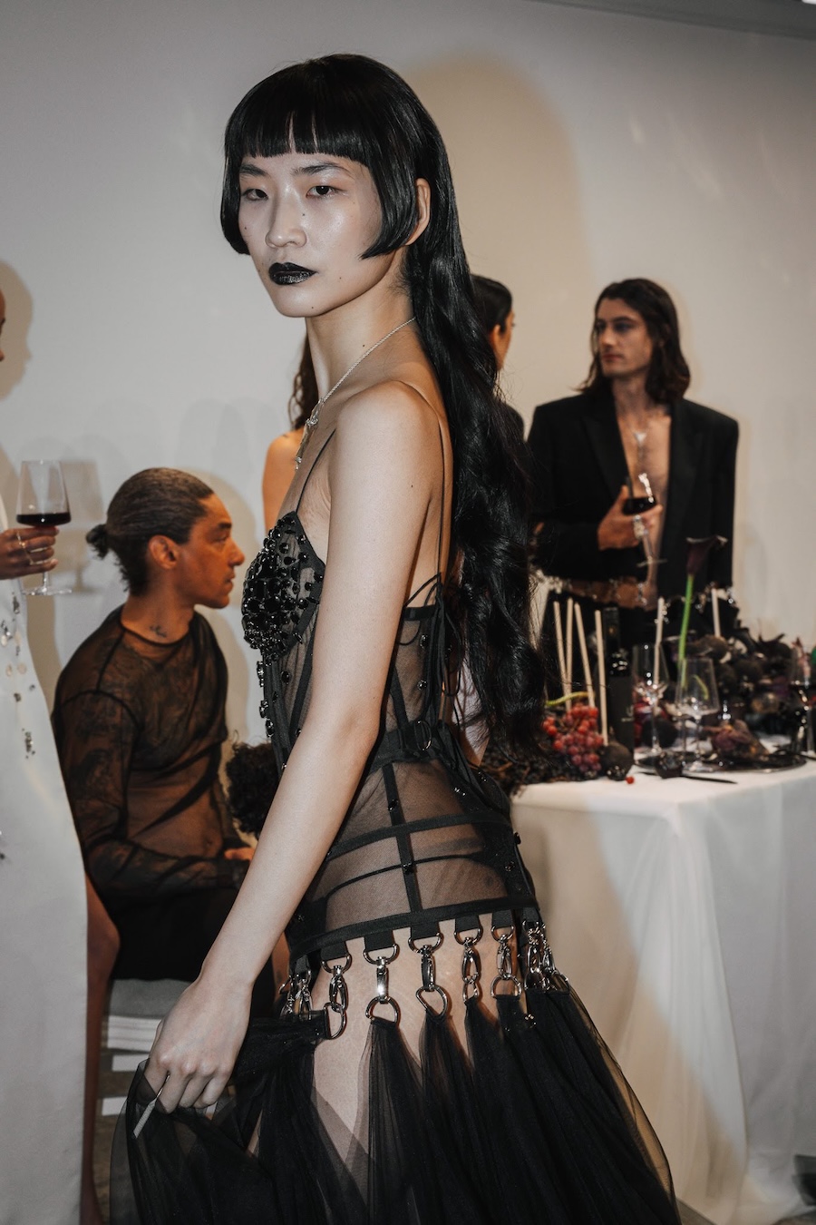 Ritual Unions unveiled their latest collection, a testament to their signature language of post-bridal couture. Expect structured silhouettes intertwined with visible corsetry, sculptural draping, and tactile embellishments that blend ceremonial elegance with a touch of subversive modern flair. Each exquisite look strikes a balance between restraint and exposure, echoing the performance’s core theme: clothing as armour, offering both protection and purposeful revelation of the body.