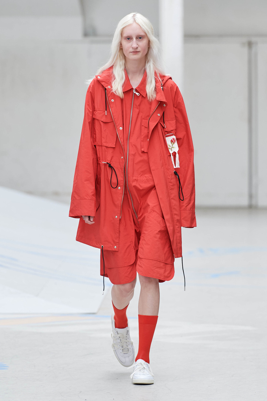 Rolf Ekroth’s reverence for the hardworking countryside people of past generations shines through the elongated silhouettes of utilitarian aprons and workwear dresses. Notably, the collection reimagines friendship bracelets as miniature alpha-woven pendants, adorning the garments and honouring traditional Nordic handicrafts. The collection becomes a vivid tapestry of imagined nostalgic moments, skillfully balancing realism and romance.