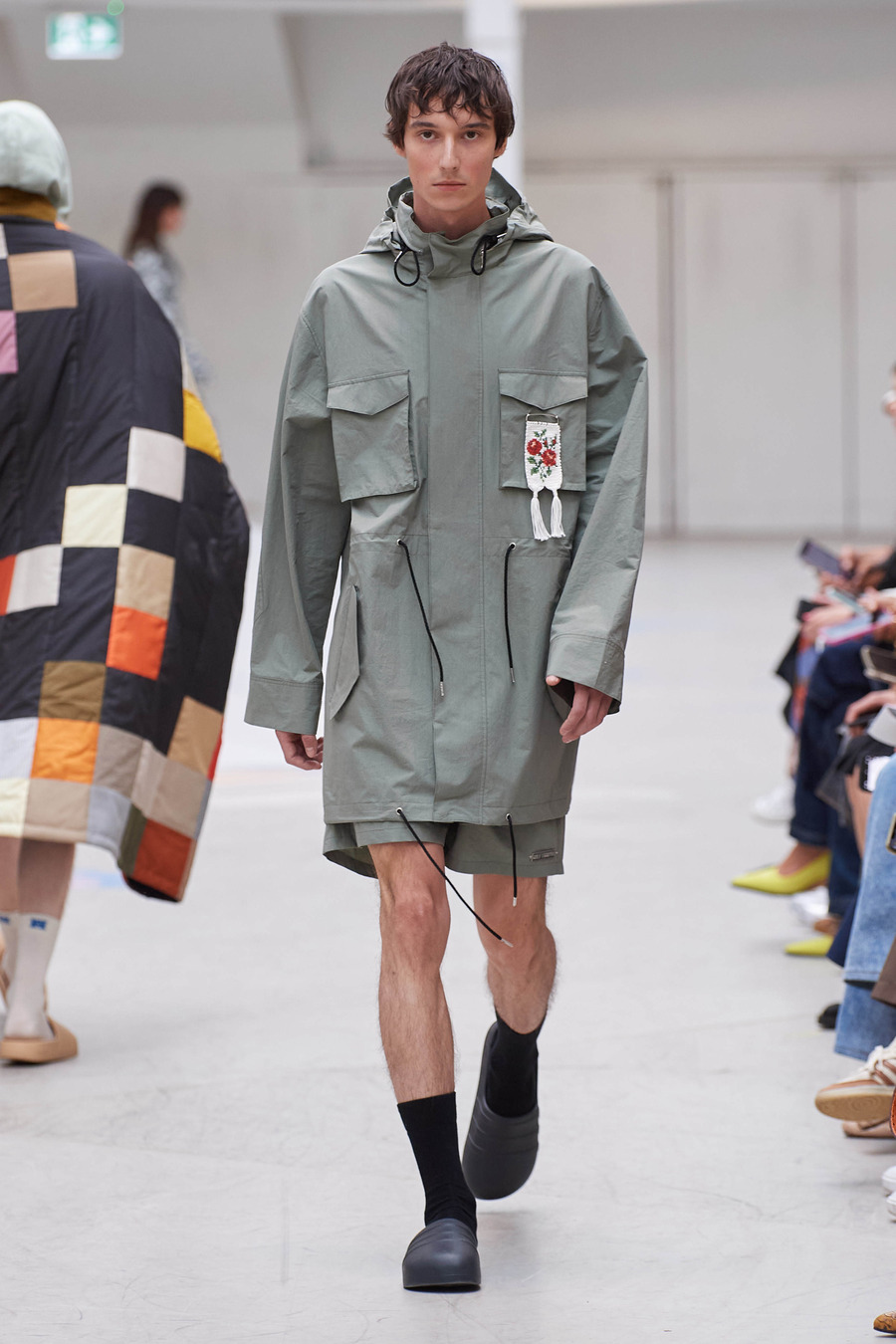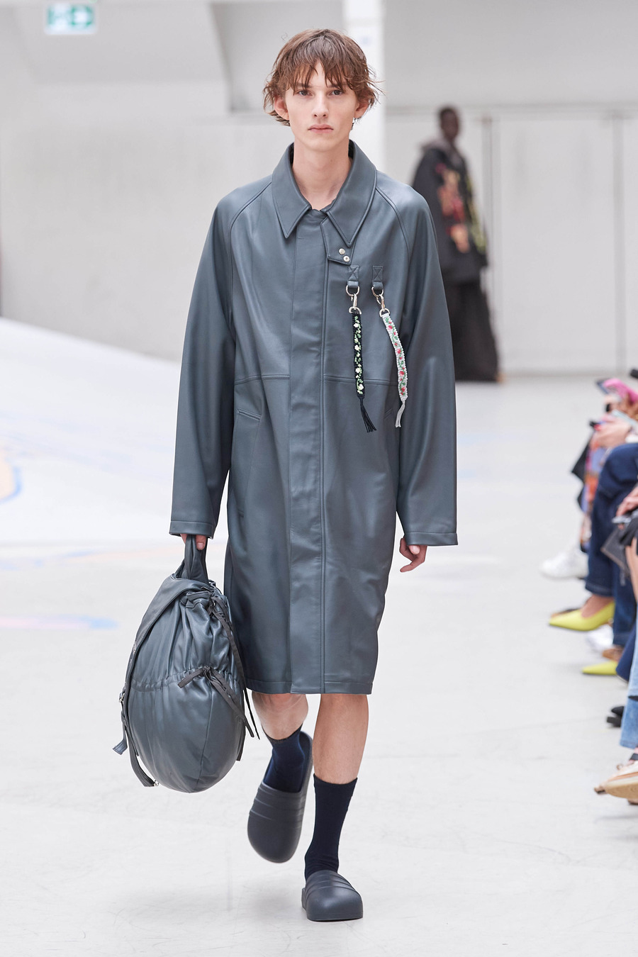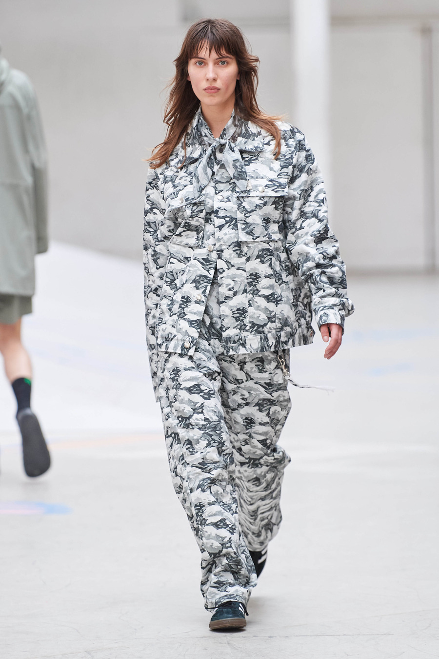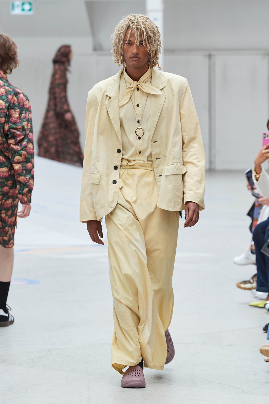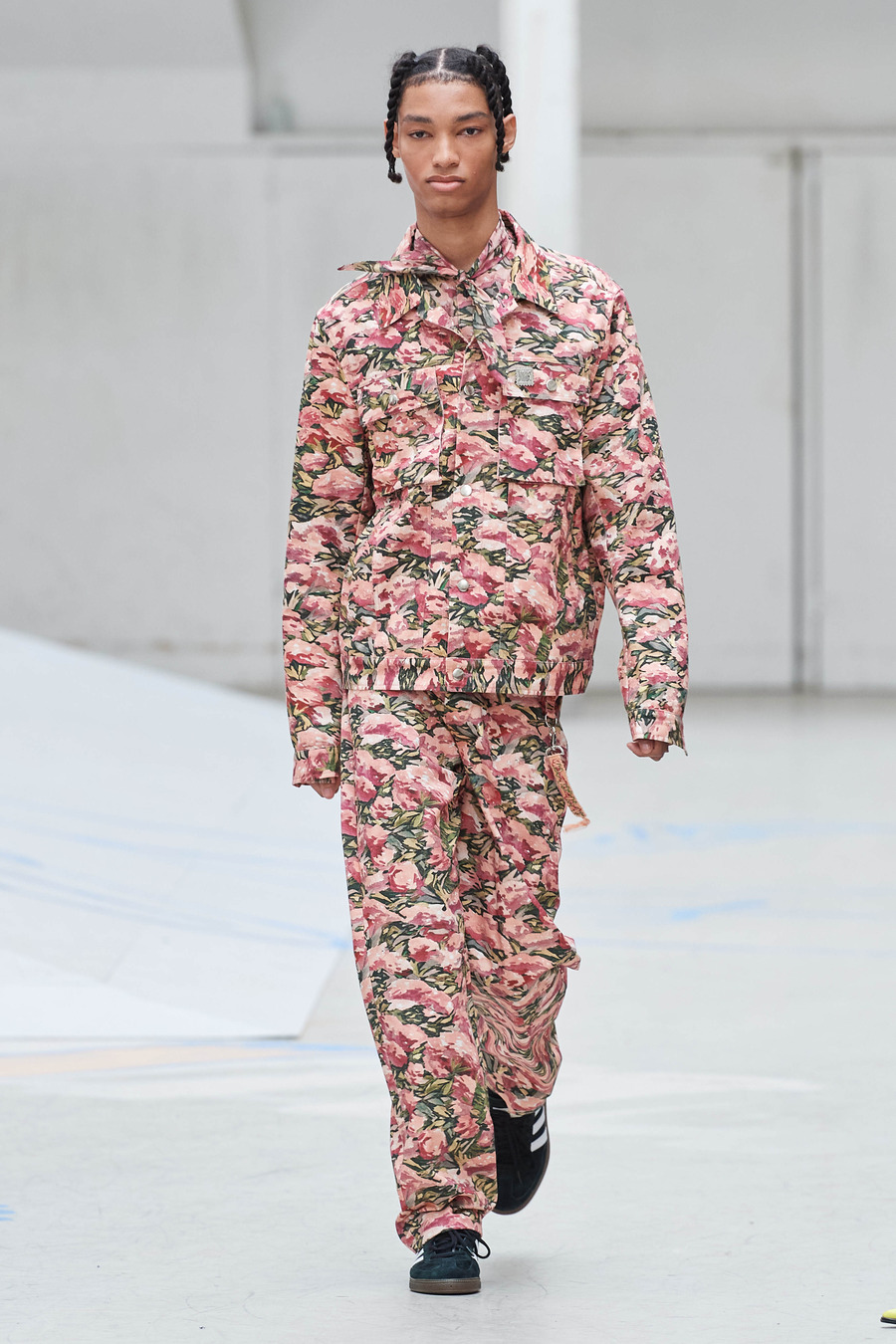 This extraordinary collection weaves a tapestry of longing, connecting generations through a harmonious blend of meticulously draped ankle-grazing aprons, oversized silhouettes, and delicately hand-painted patterns. Rolf Ekroth seamlessly taps into his own nostalgia, crafting a visual narrative that intertwines his pastel-coloured memories of the 1990s, his parents’ delicately intertwined recollections of the 1960s and his grandparents’ persistent yearning for the past.