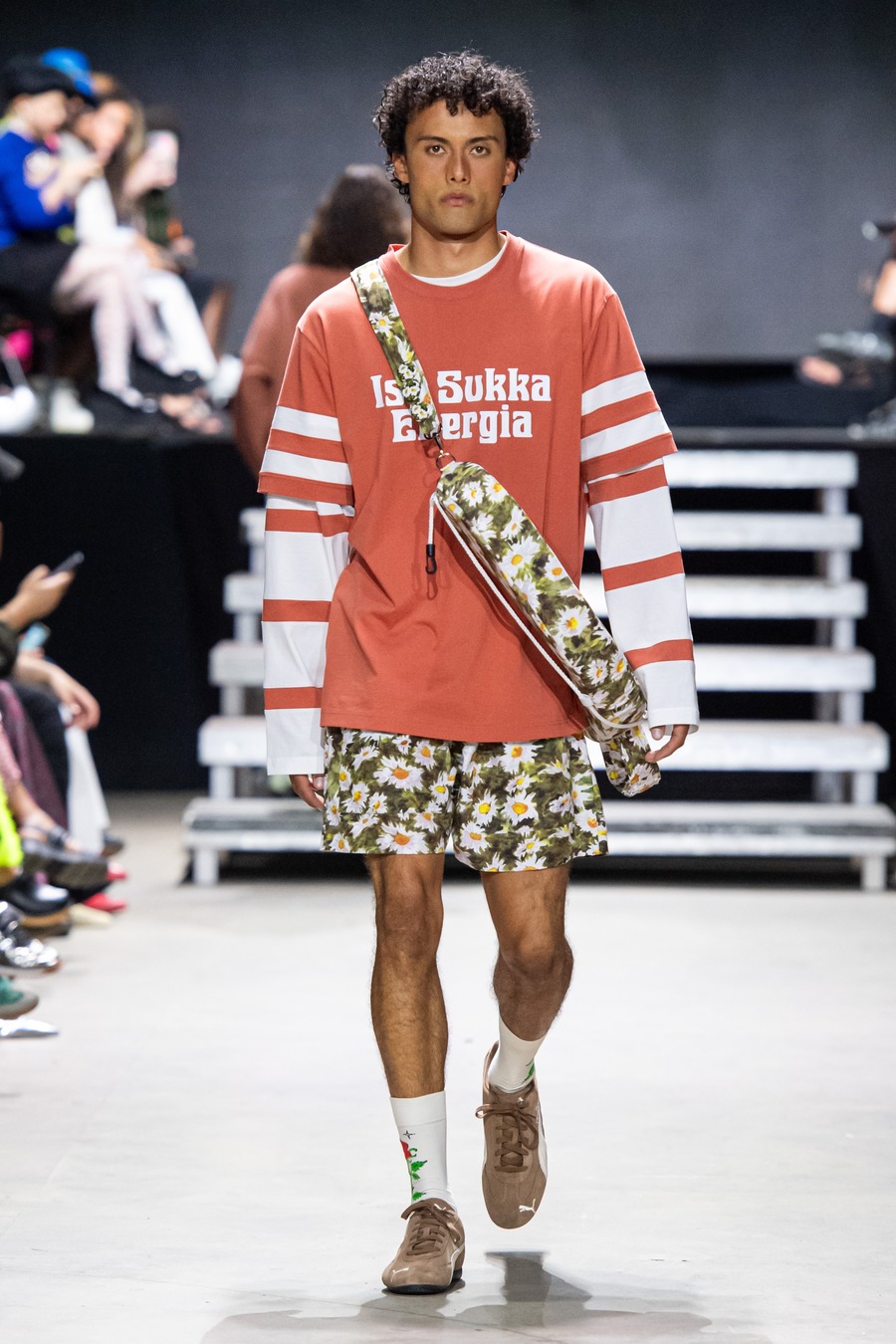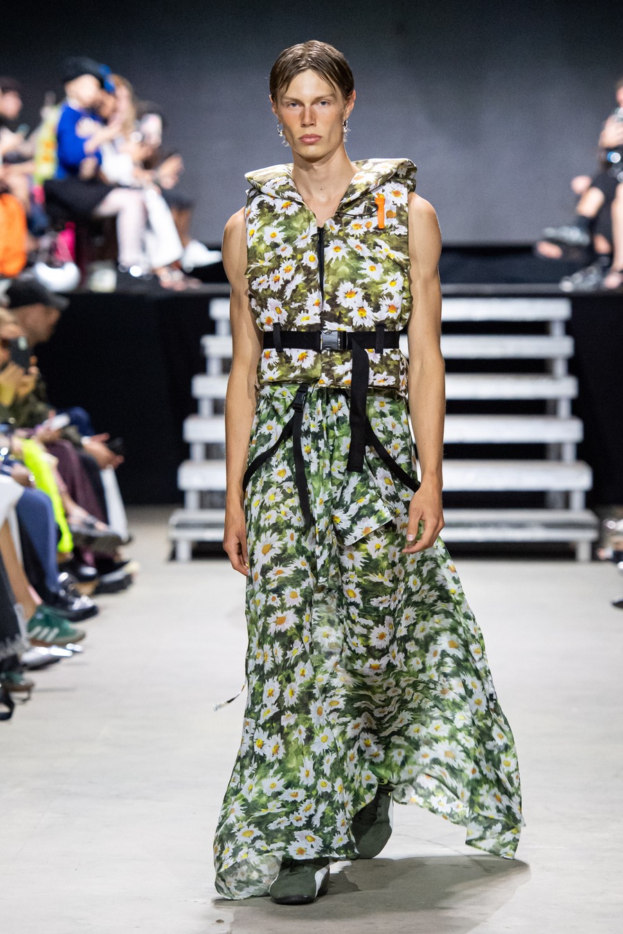 This collection, inspired by Ekroth’s personal experiences, is a playful nod to longing—a love letter to summer nights spent at the dance pavilion. It dances with contrasts, mirroring the romantic yet melancholic undertones of Finnish culture. The collection’s standout piece is a life vest top adorned with romantic floral prints—a poignant statement on Finland’s drowning statistics that marries life-saving functionality with aesthetic flair.