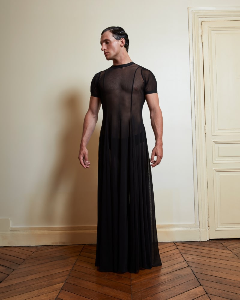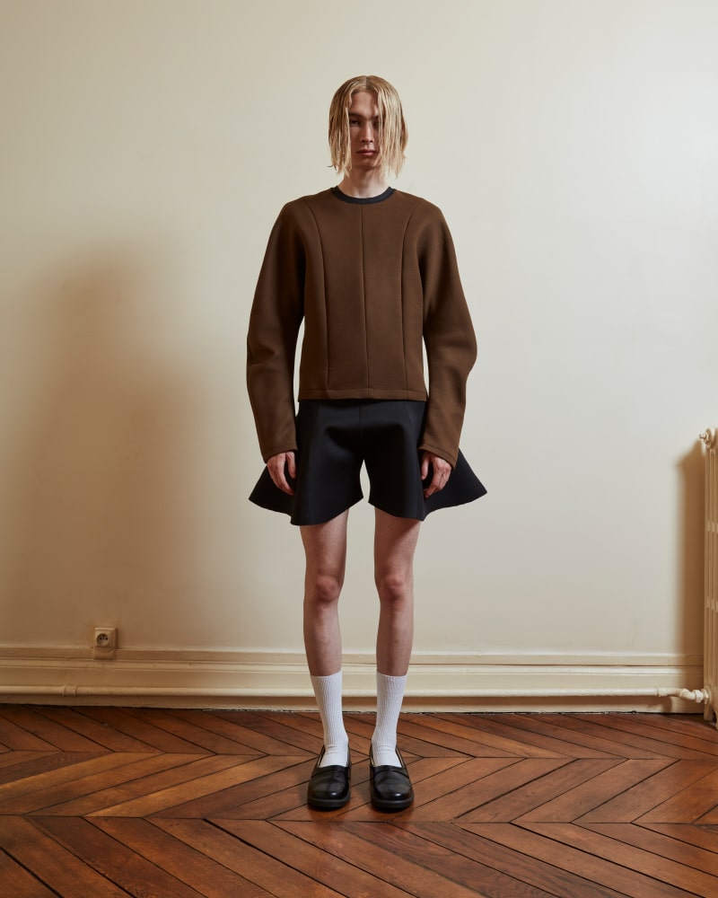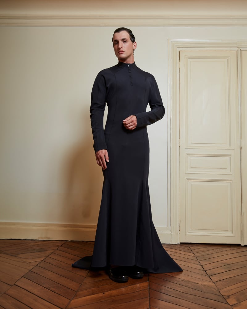 Within this captivating collection, a captivating synergy unfolds: athleticism intertwines with romanticism, daringly challenging the established ideals of masculinity. With an impressive repertoire of 25 distinct looks, Kremer deliberately chose to capture and document this exceptional collection within the personal confines of his apartment, establishing an intimate connection between his designs and his creative process.