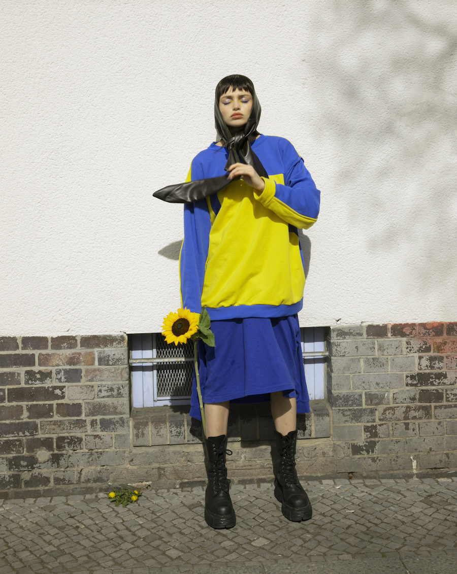 “All of us are worried about the war in Ukraine. The entire team left the country and are in Berlin the status of refugees. The Berlin designer has created a collection in support of Ukraine, all money from which will be sent to help the war who are in the occupied territory. Sweatshirts made of organic cotton in the colour of the Ukrainian flag are available throughout Europe, and 30% of each goes to the fund of the city of Mariupol. Everyone can help Ukraine with humanitarian aid, money, care and compassion for the people who have arrived and suffered from the war.”