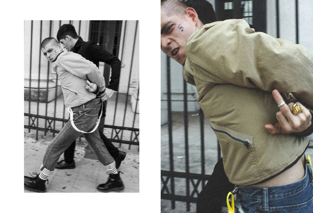 Jacket by Levis, T-shirt by Papaupa. Trousers by Antony Morato, Jacket by Levis, T-shirt by Papaupa Jacket Stylist´s Own, T-shirt by Papaupa, Trousers by Adidas Originals Polo by Tommy Hilfiger, Trousers by Levis, Socks by Adidas Original, Sneakers by Fila T-shirt by Diesel, Track pants by Adidas Originals